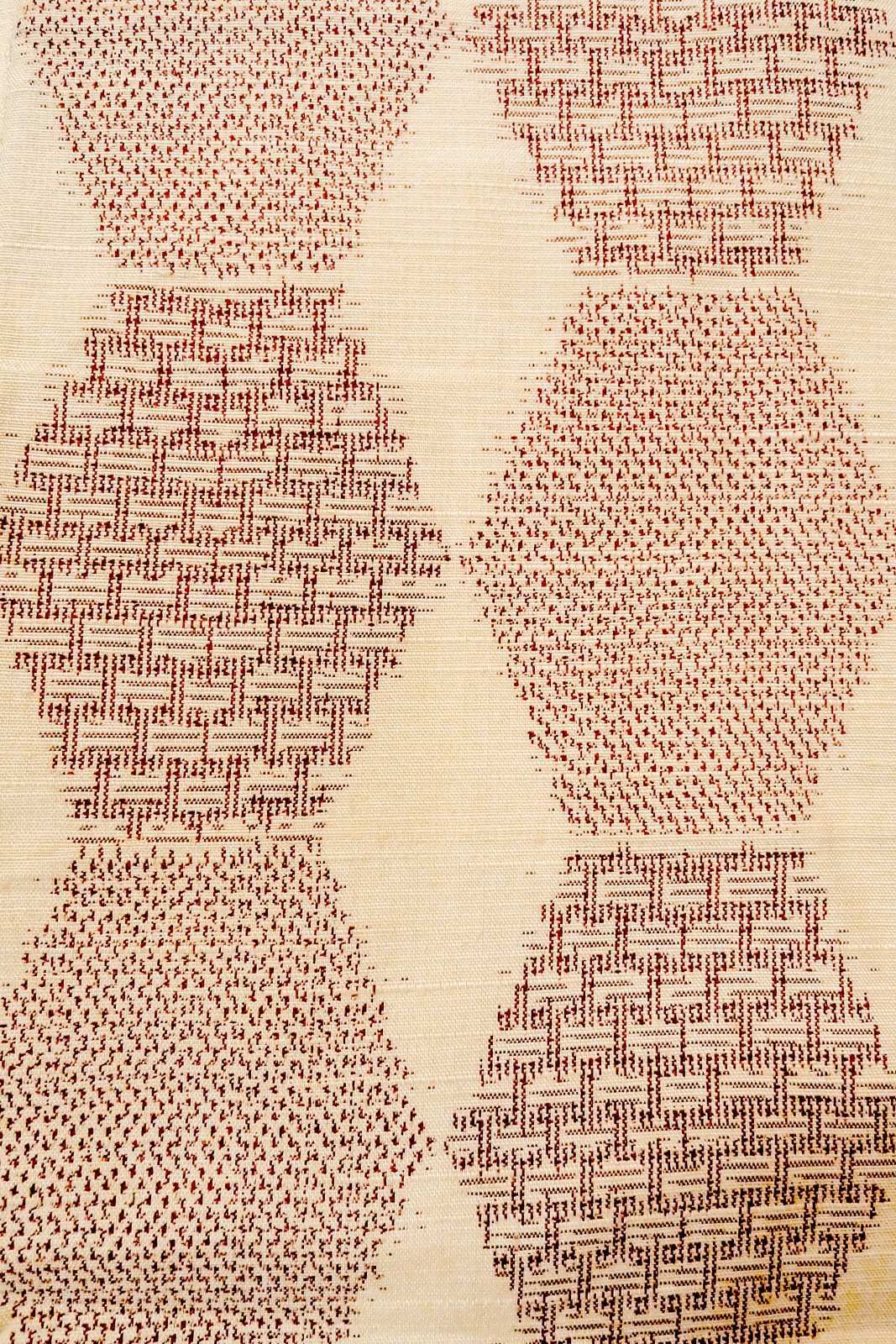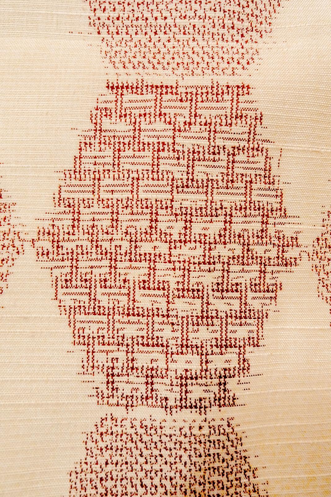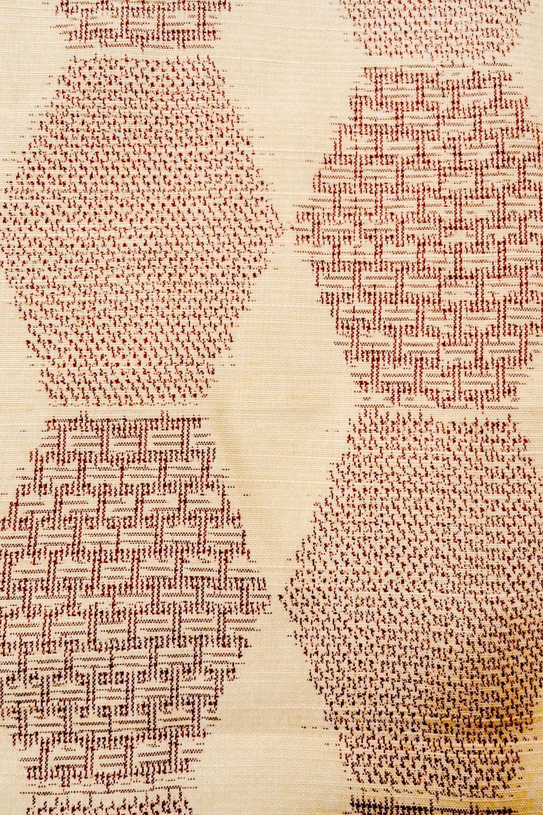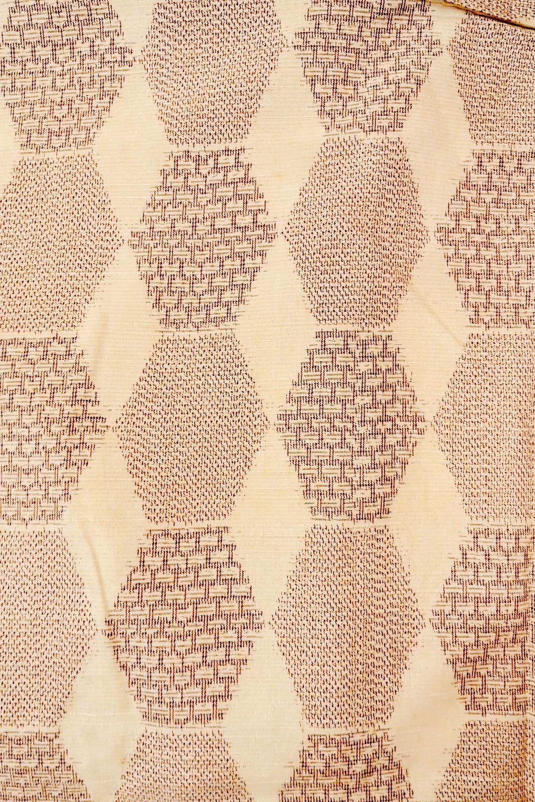O0711B 女性用紬 シルク(正絹) オフ ホワイト, 幾何学模様 【中古】【USED】【リサイクル】 ★★★☆☆【O0711B】 [O0711B]