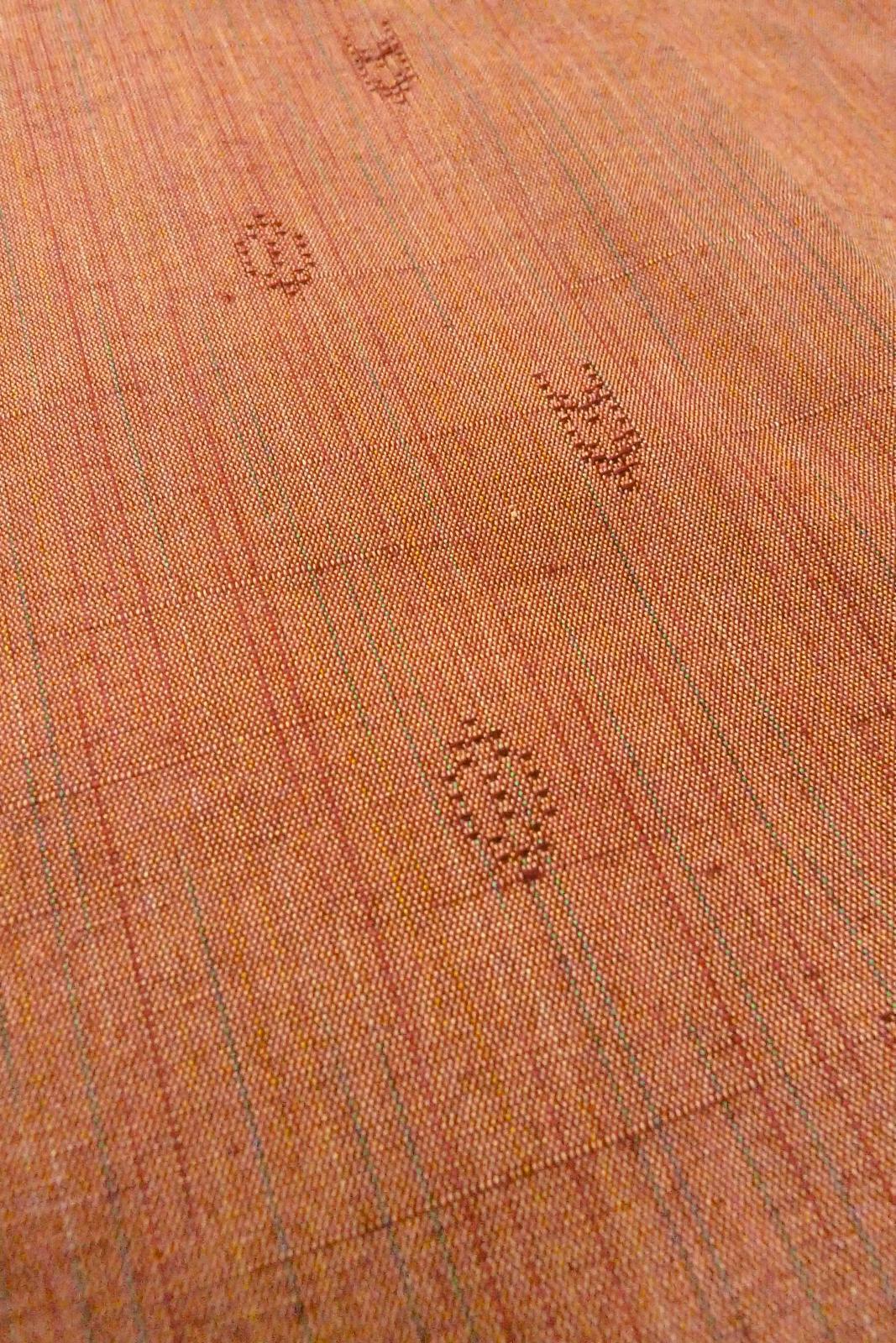 O0711D"女性用紬 シルク(正絹) 灰色がかった朱赤, 線 【中古】【USED】【リサイクル】 ★★★★☆【O0711D】