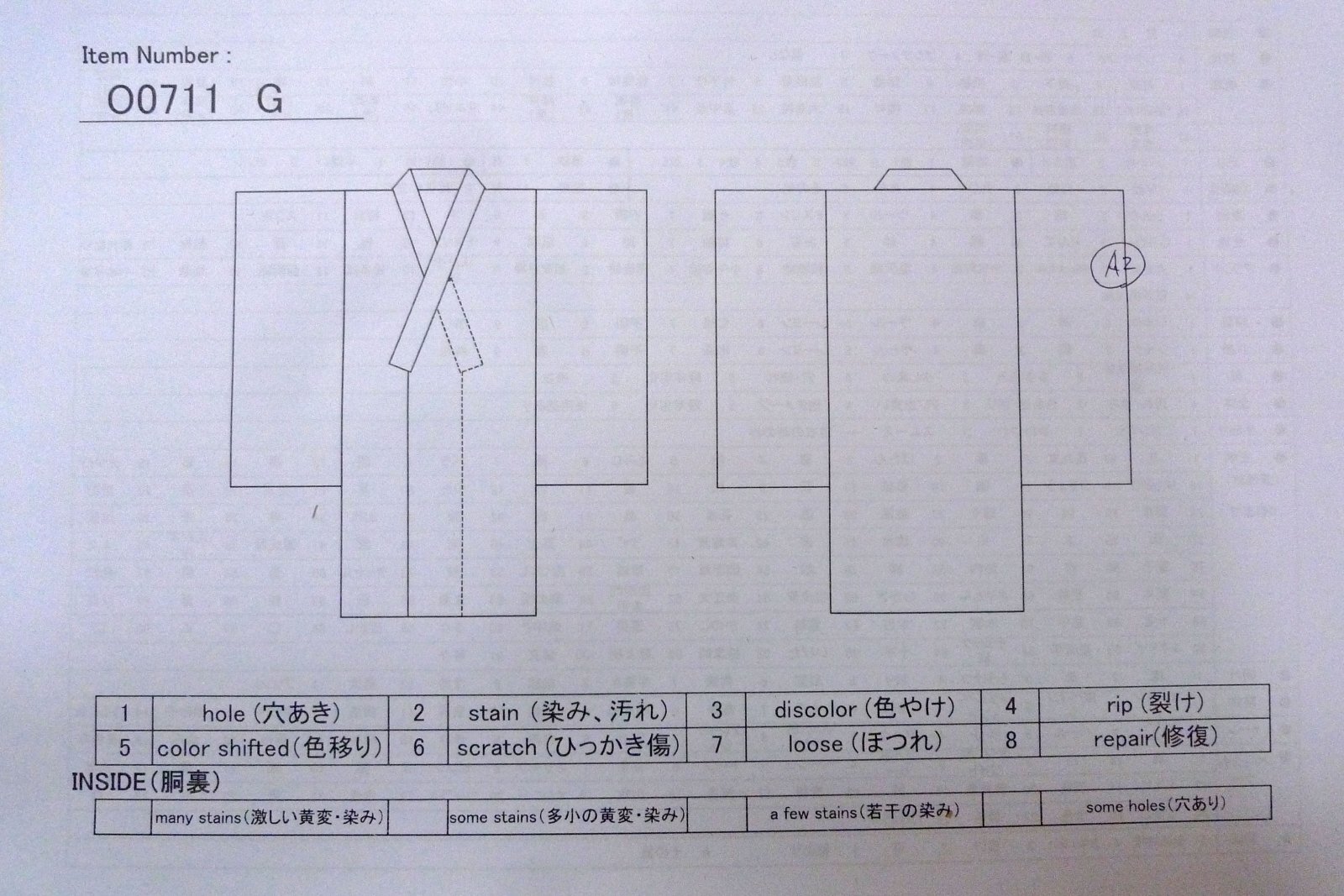 ![]() | 袖から袖 : | 50.7" | 129cm (裄:64.5cm / 1 尺 7 寸 ) | |