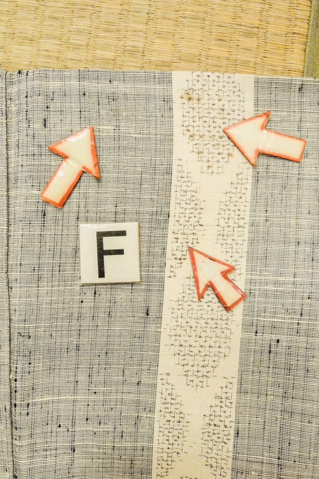 O0711J"女性用紬 シルク(正絹) 薄い灰色, 菱 【中古】【USED】【リサイクル】 ★★☆☆☆【O0711J】