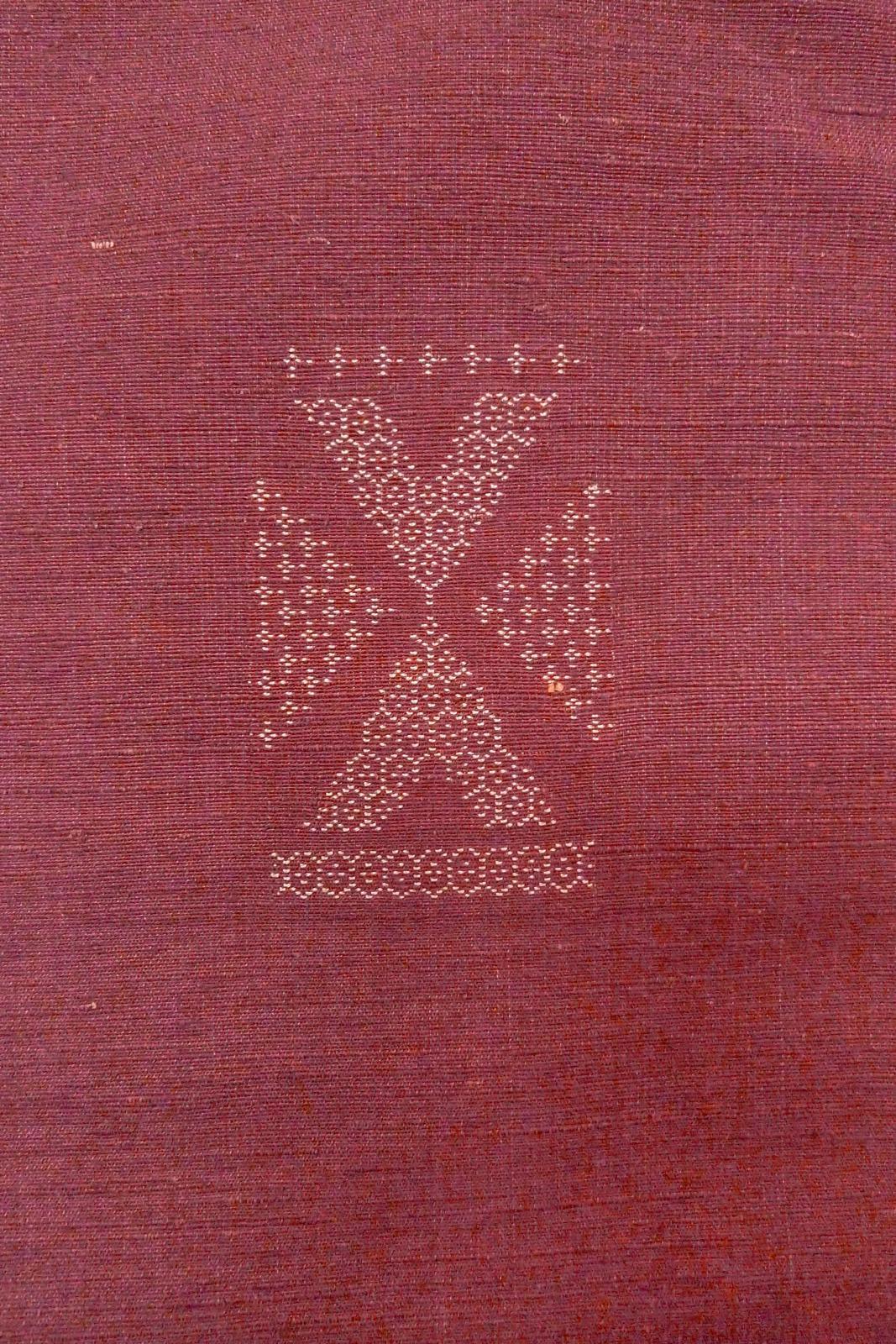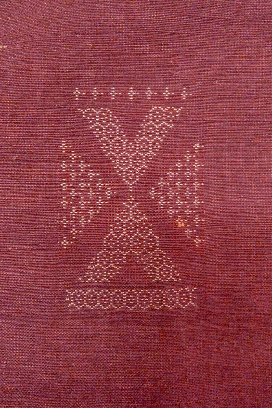O0711Q"女性用紬 シルク(正絹) 淡いえんじ, 幾何学模様 【中古】【USED】【リサイクル】 ★★★☆☆【O0711Q】