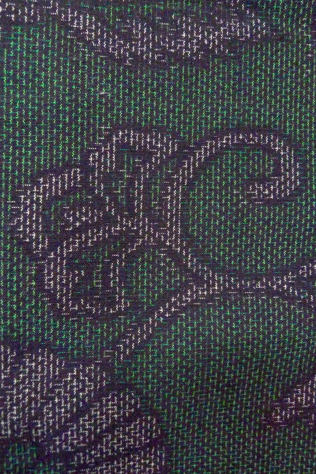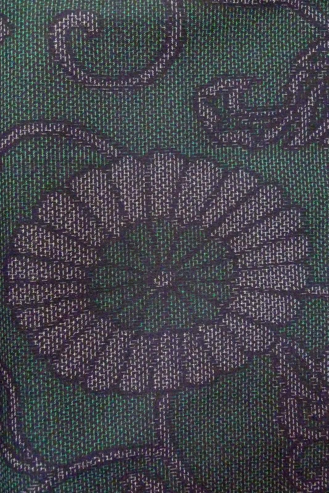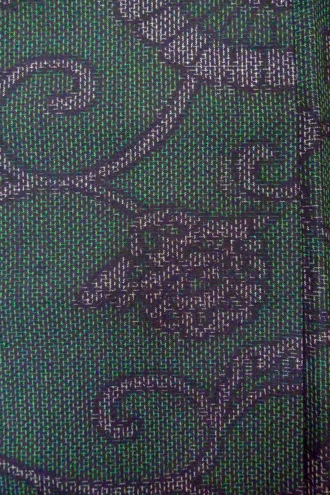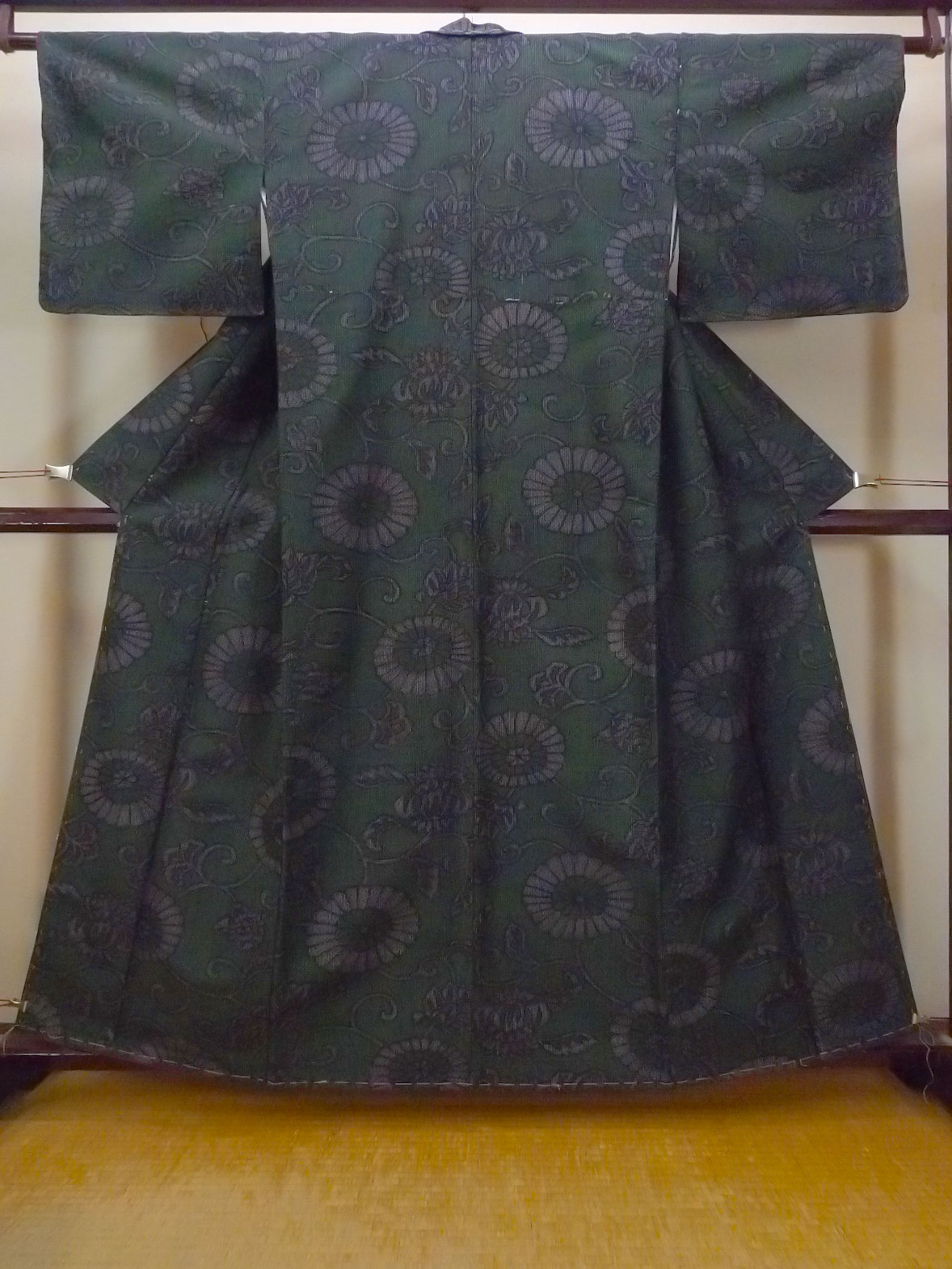 O0711W 女性用紬 シルク(正絹) 深い緑色, 唐花 【中古】【USED】【リサイクル】 ★★★★☆【O0711W】 [O0711W]
