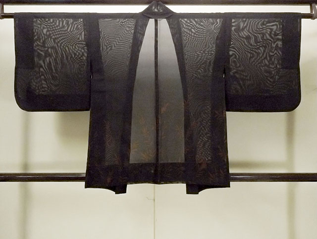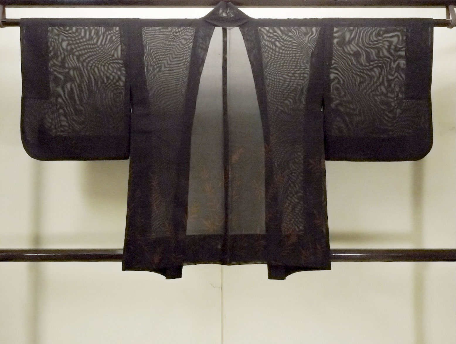 O0902Z女性用羽織 シルク(正絹) 黒, 草 【中古】【USED】【リサイクル】 ★★★★☆【O0902Z】