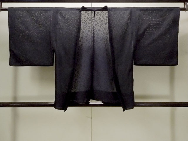 O0903C女性用羽織 化繊 黒, 唐花 【中古】【USED】【リサイクル】 ★★★★☆【O0903C】
