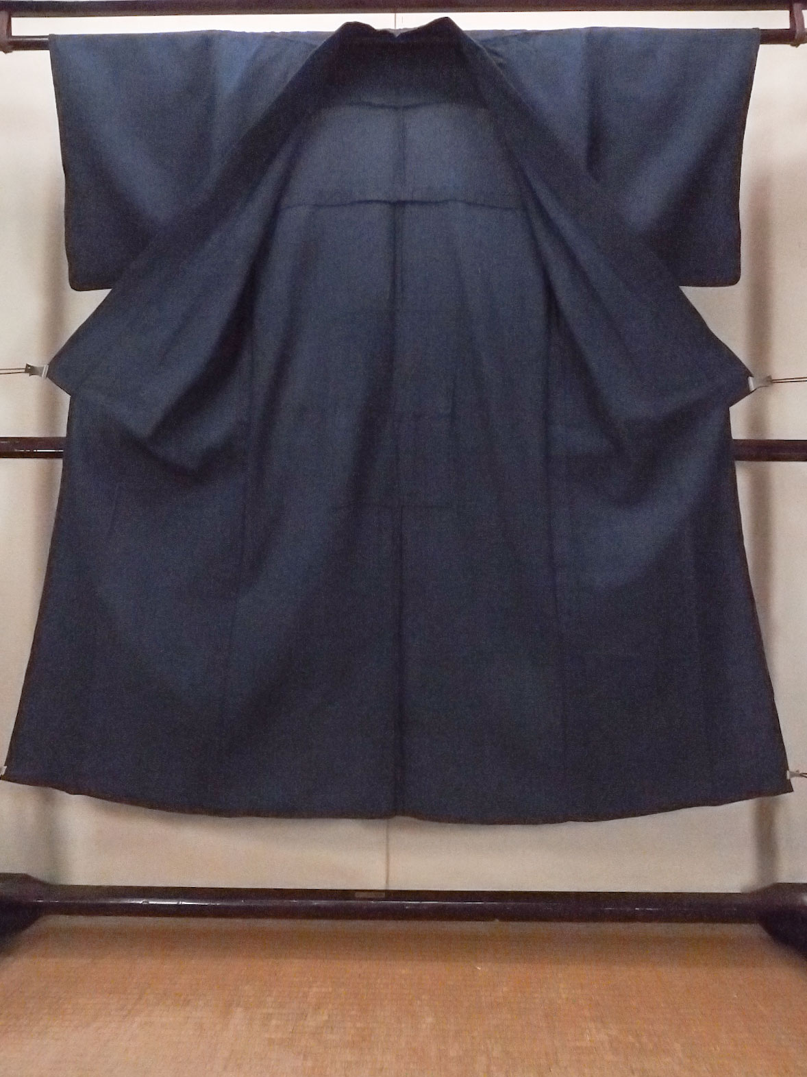 O0826I"女性用浴衣(日本製) 綿 深い藍, 線 【中古】【USED】【リサイクル】 ★☆☆☆☆【O0826I】