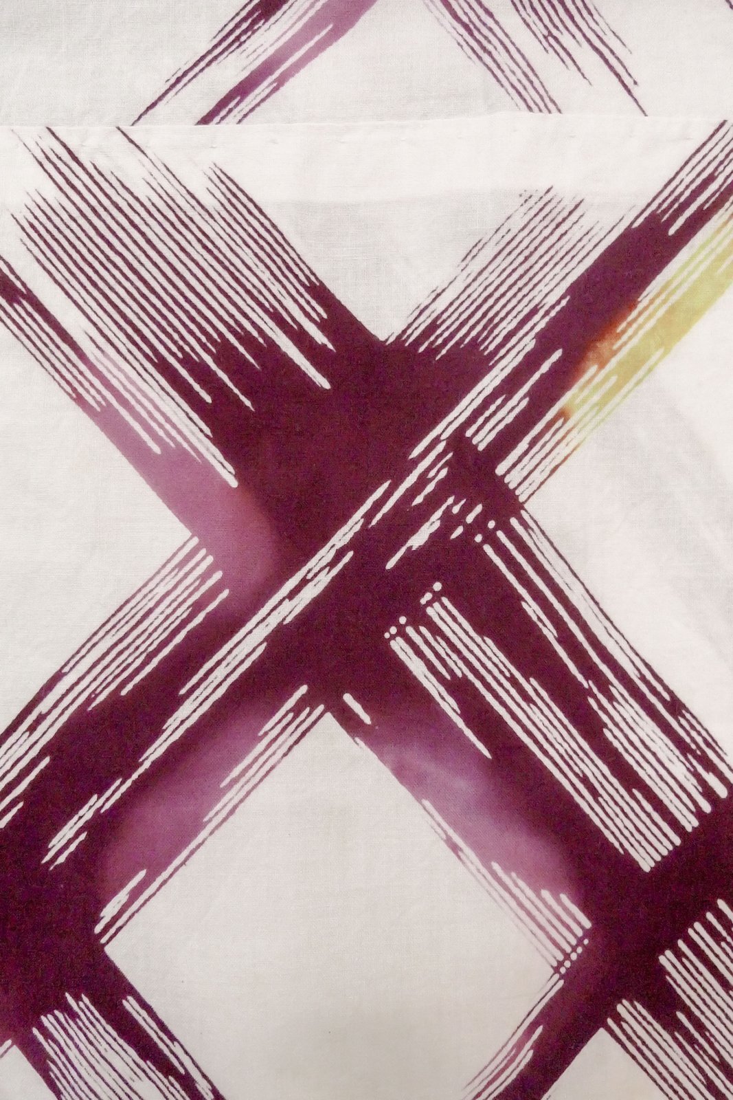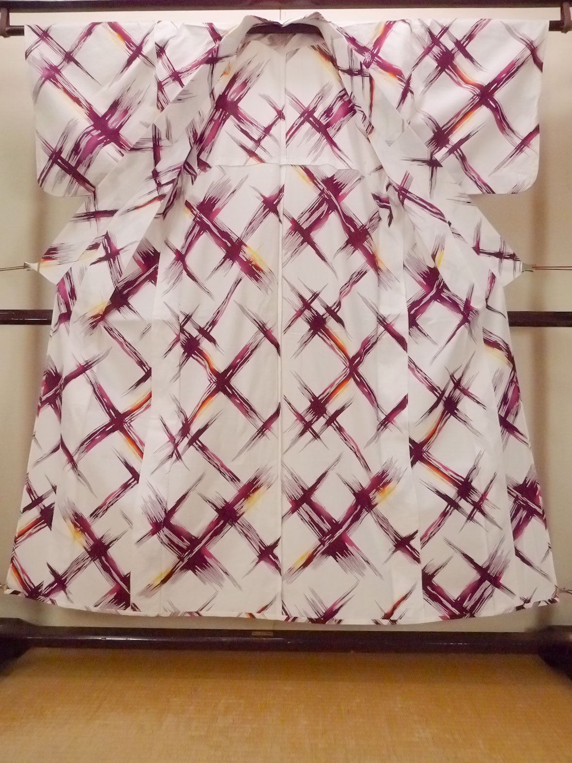 O0826M 女性用注染浴衣 綿 白, 幾何学模様 【中古】【USED】【リサイクル】 ★★☆☆☆【O0826M】 [O0826M]