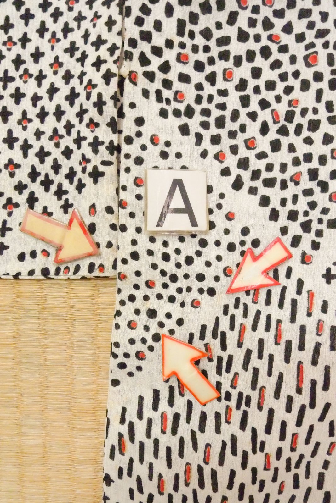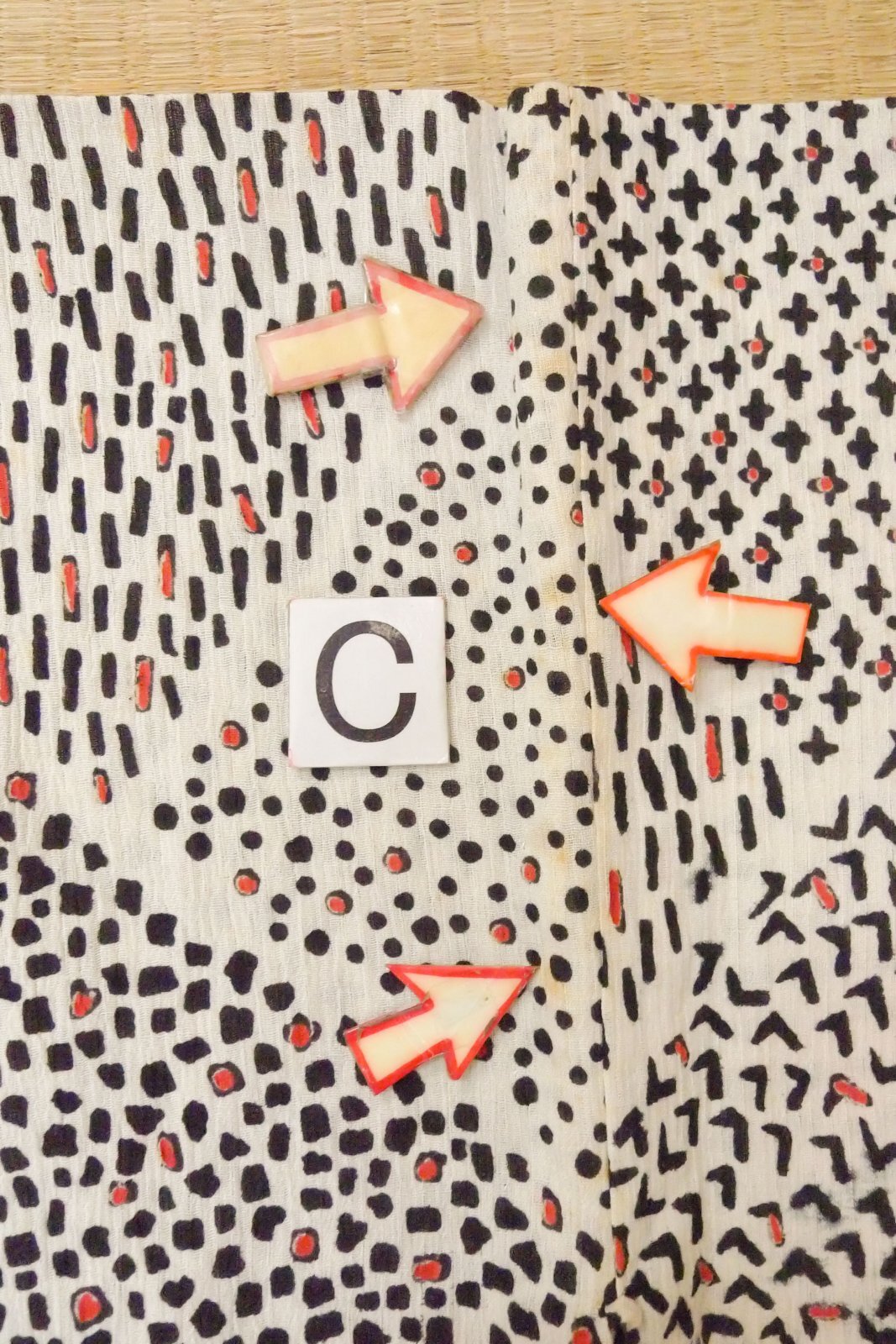 ![]() | 袖から袖 : | 51.1" | 130cm (裄:65cm / 1 尺 7 寸 2 分) | |