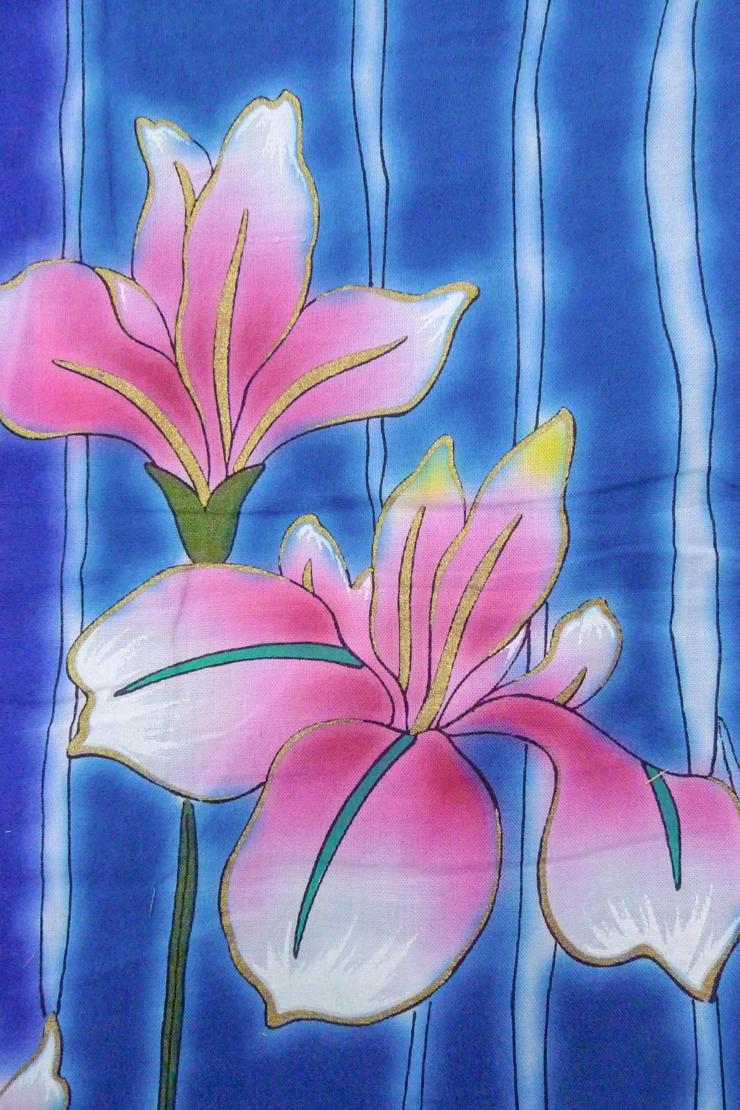 O0826O 女性用浴衣(海外製) 綿 青, あやめ 【中古】【USED】【リサイクル】 ★★★☆☆【O0826O】 [O0826O]