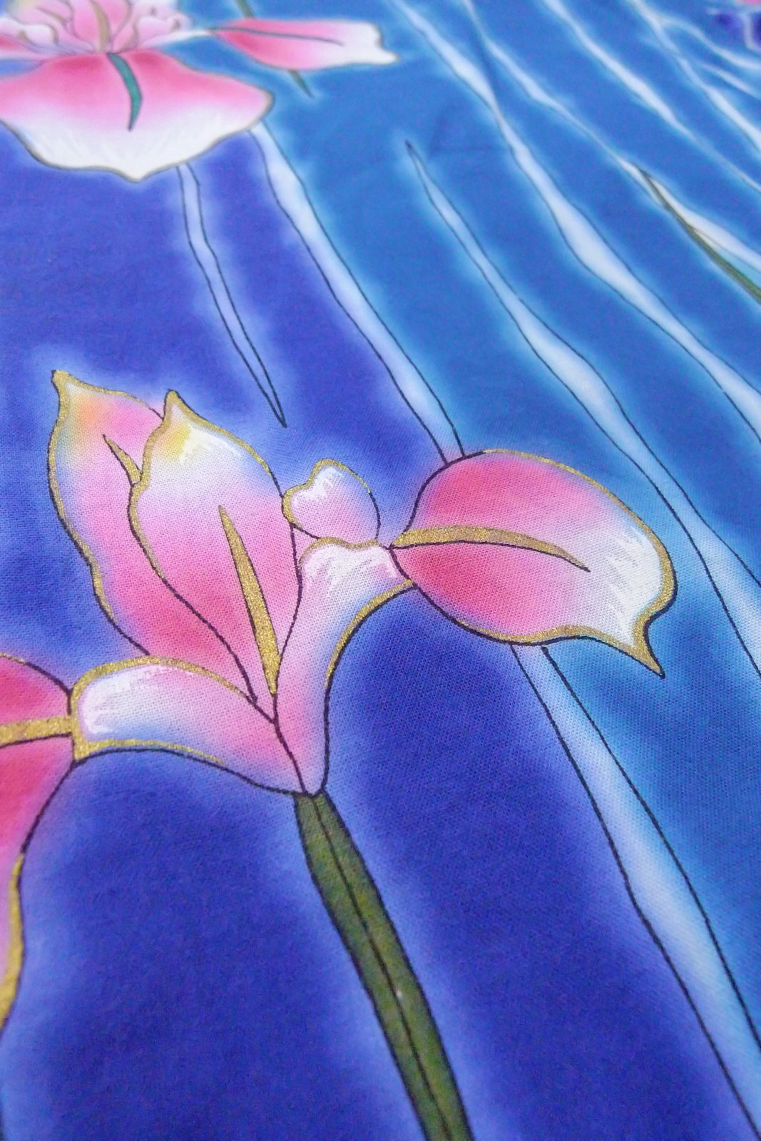 O0826O"女性用浴衣(海外製) 綿 青, あやめ 【中古】【USED】【リサイクル】 ★★★☆☆【O0826O】
