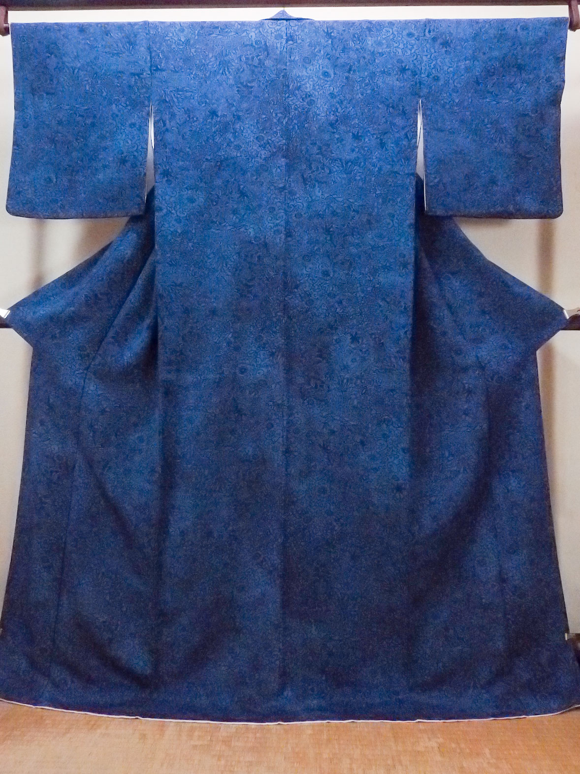 O0826X 女性用小紋 シルク(正絹) 藍, もみじ 【中古】【USED】【リサイクル】 ★★★☆☆【O0826X】 [O0826X]