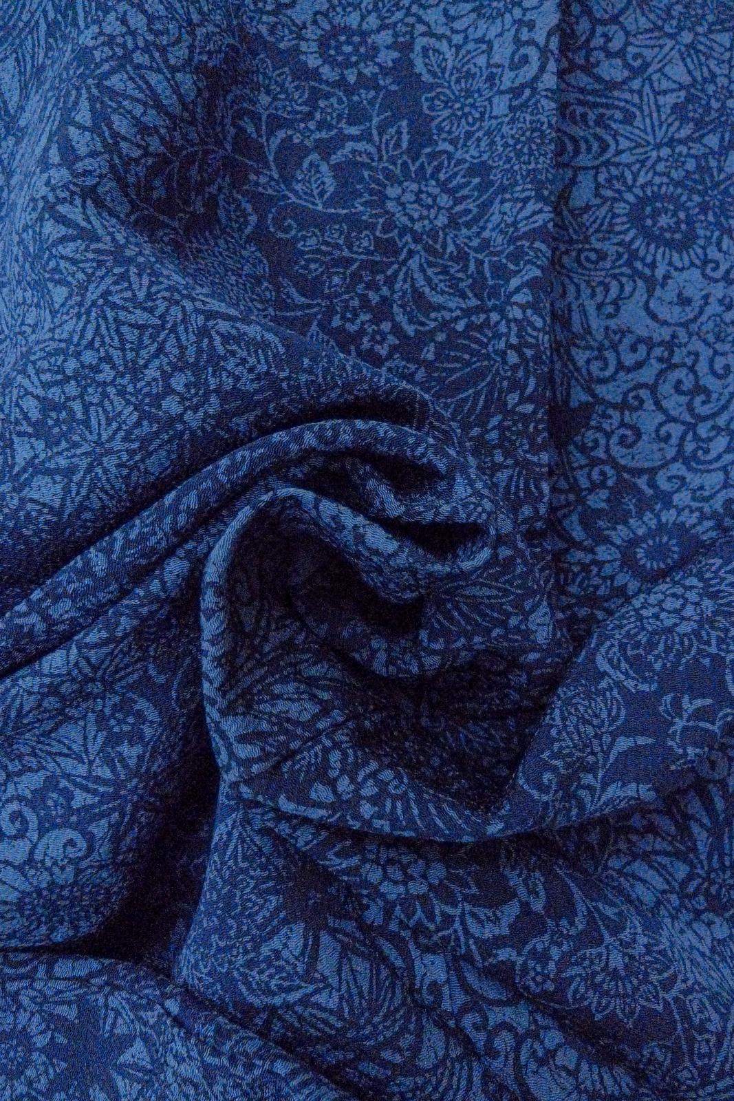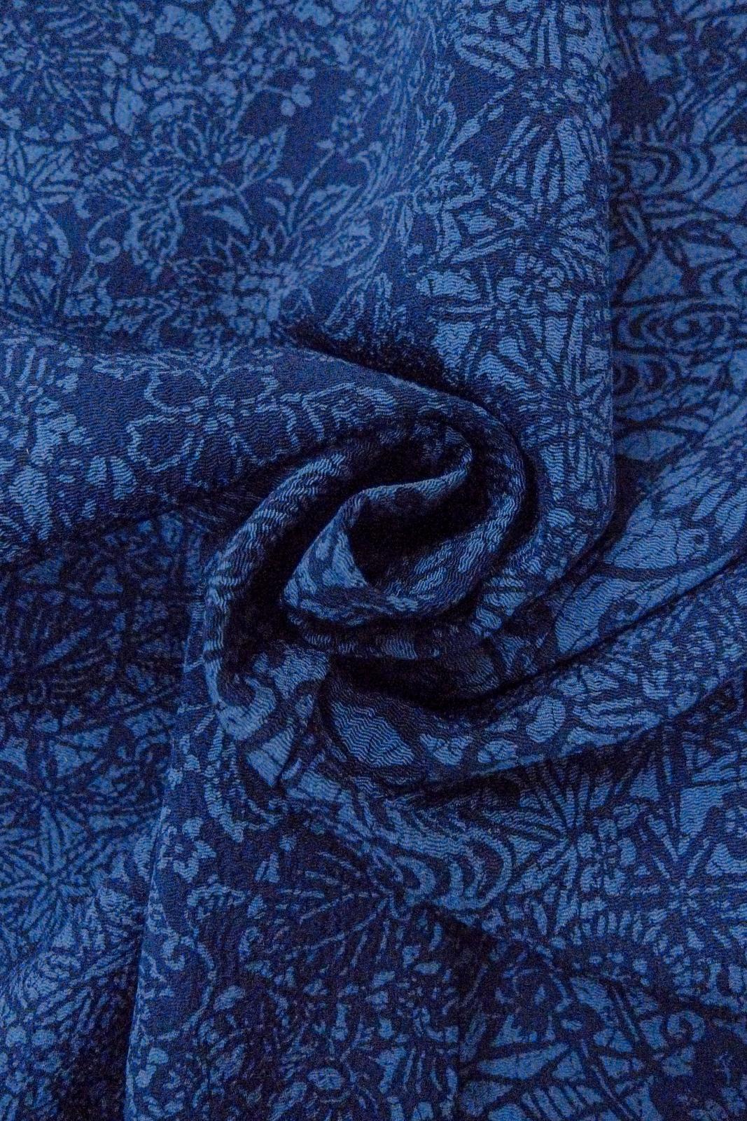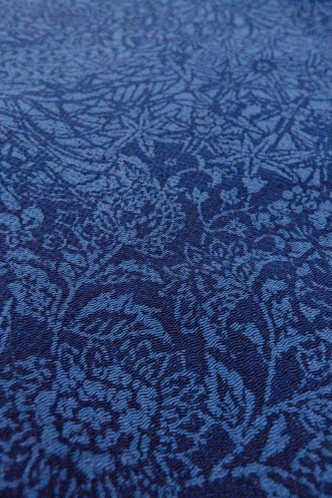 O0826X 女性用小紋 シルク(正絹) 藍, もみじ 【中古】【USED】【リサイクル】 ★★★☆☆【O0826X】