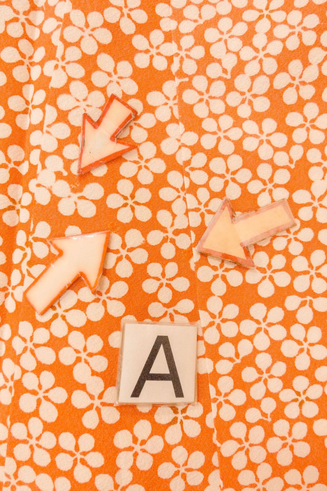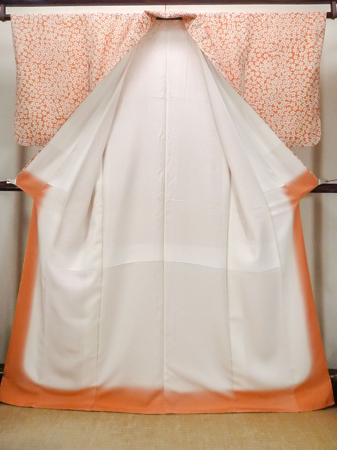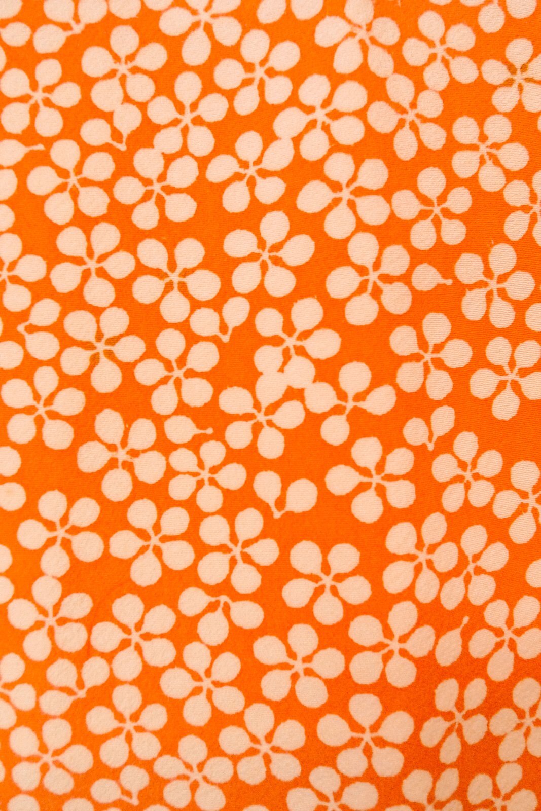 O0827C 女性用小紋 シルク(正絹) 淡い橙色, 花 【中古】【USED】【リサイクル】 ★★★☆☆【O0827C】