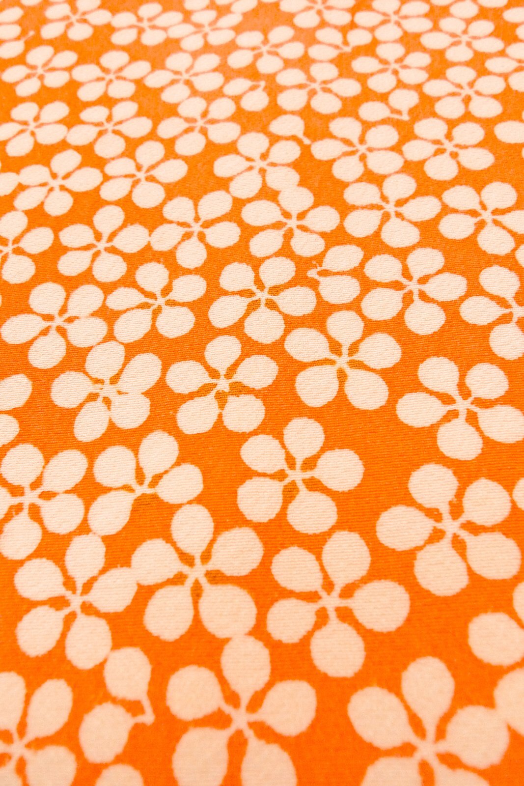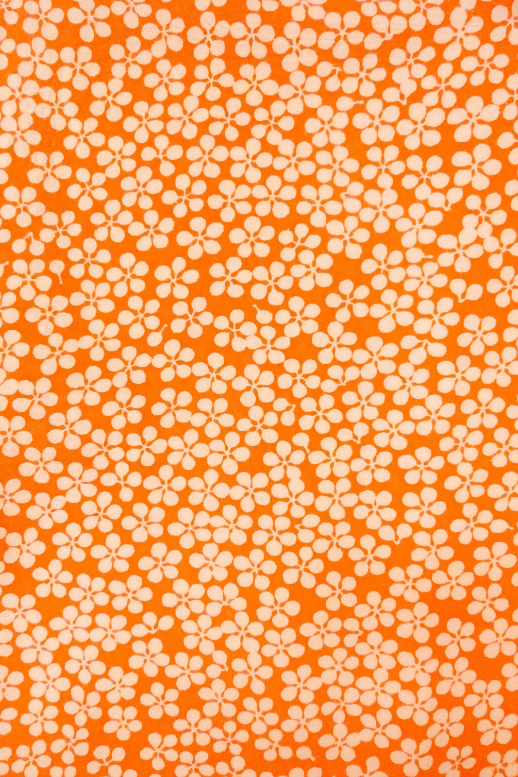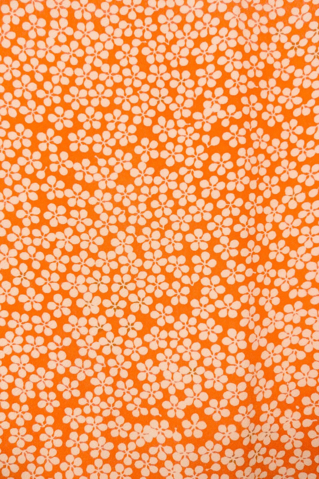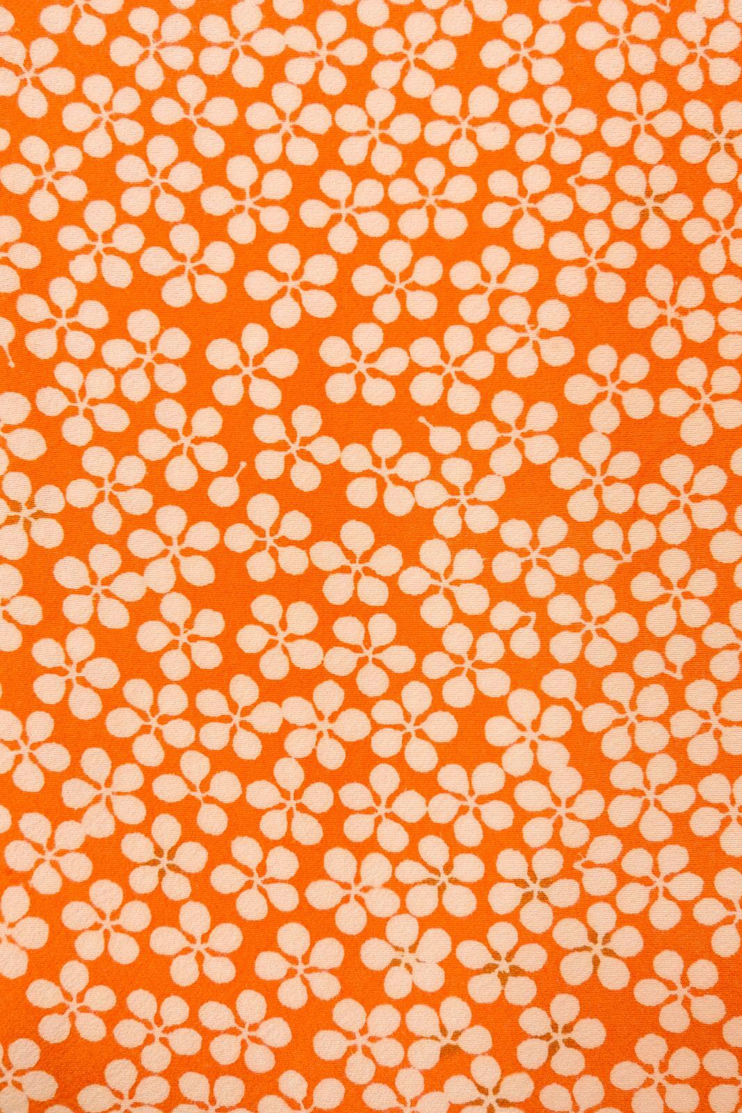 O0827C 女性用小紋 シルク(正絹) 淡い橙色, 花 【中古】【USED】【リサイクル】 ★★★☆☆【O0827C】 [O0827C]