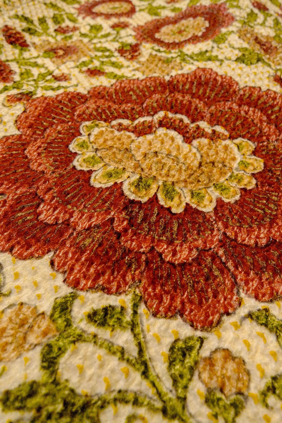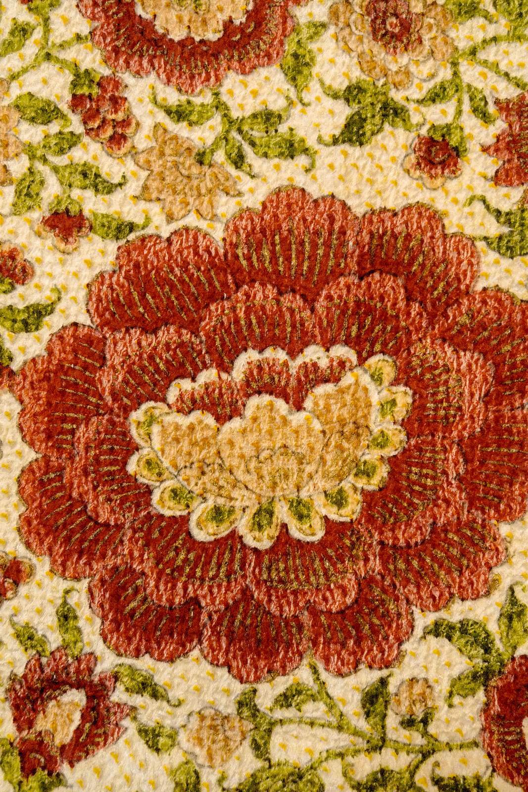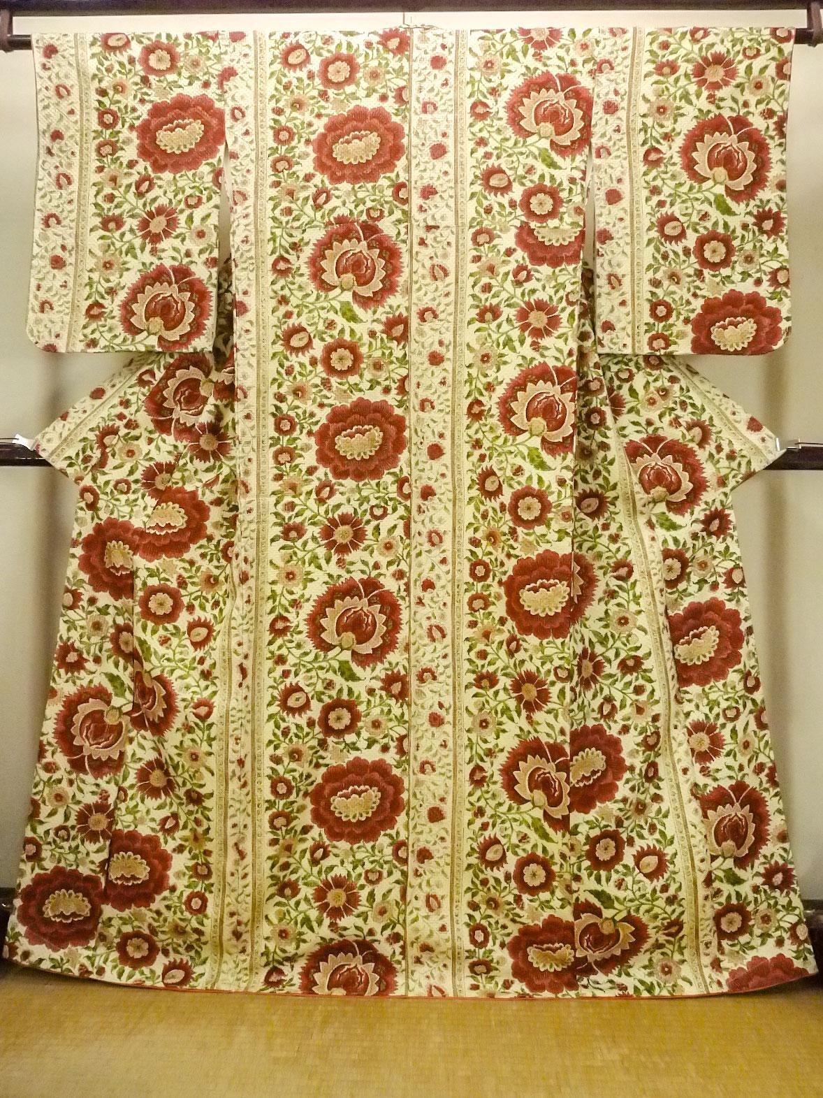 O0827D 女性用小紋 シルク(正絹) アイボリー, 唐花 【中古】【USED】【リサイクル】 ★★★★☆【O0827D】 [O0827D]