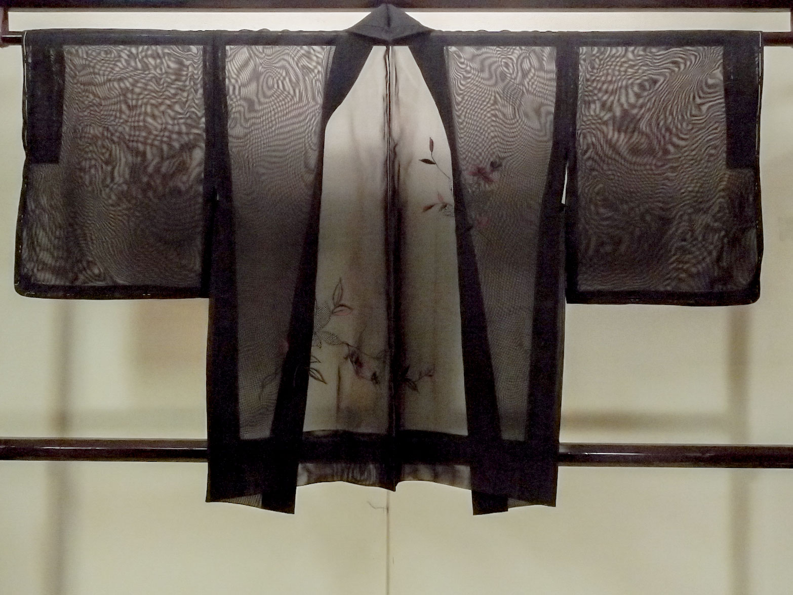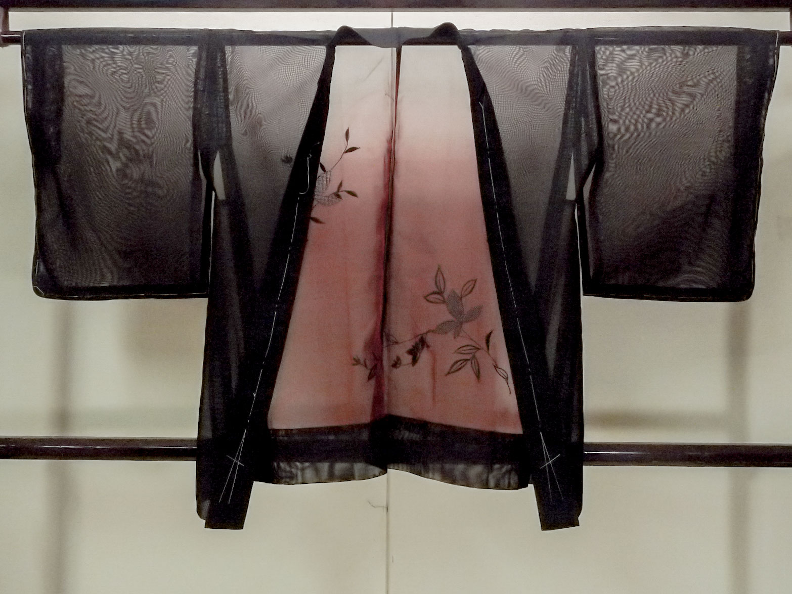 O0909C 女性用羽織 シルク(正絹) 黒, 花 【中古】【USED】【リサイクル】 ★★★★☆【O0909C】
