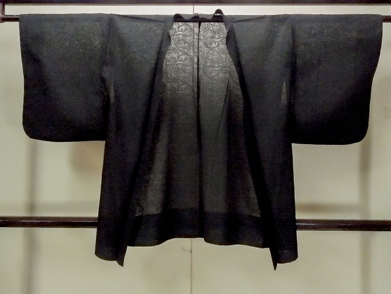O0909H 女性用羽織 シルク(正絹) 黒, うず 【中古】【USED】【リサイクル】 ★★★☆☆【O0909H】 [O0909H]