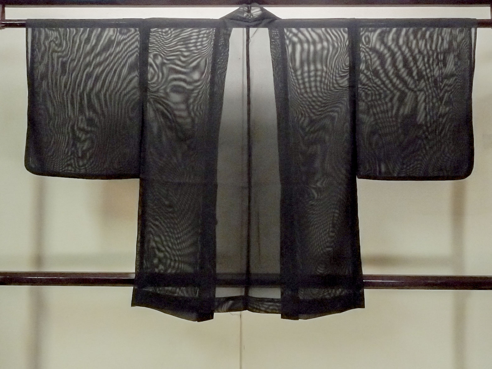 O0909I 女性用羽織 シルク(正絹) 黒, 草 【中古】【USED】【リサイクル】 ★★★☆☆【O0909I】 [O0909I]