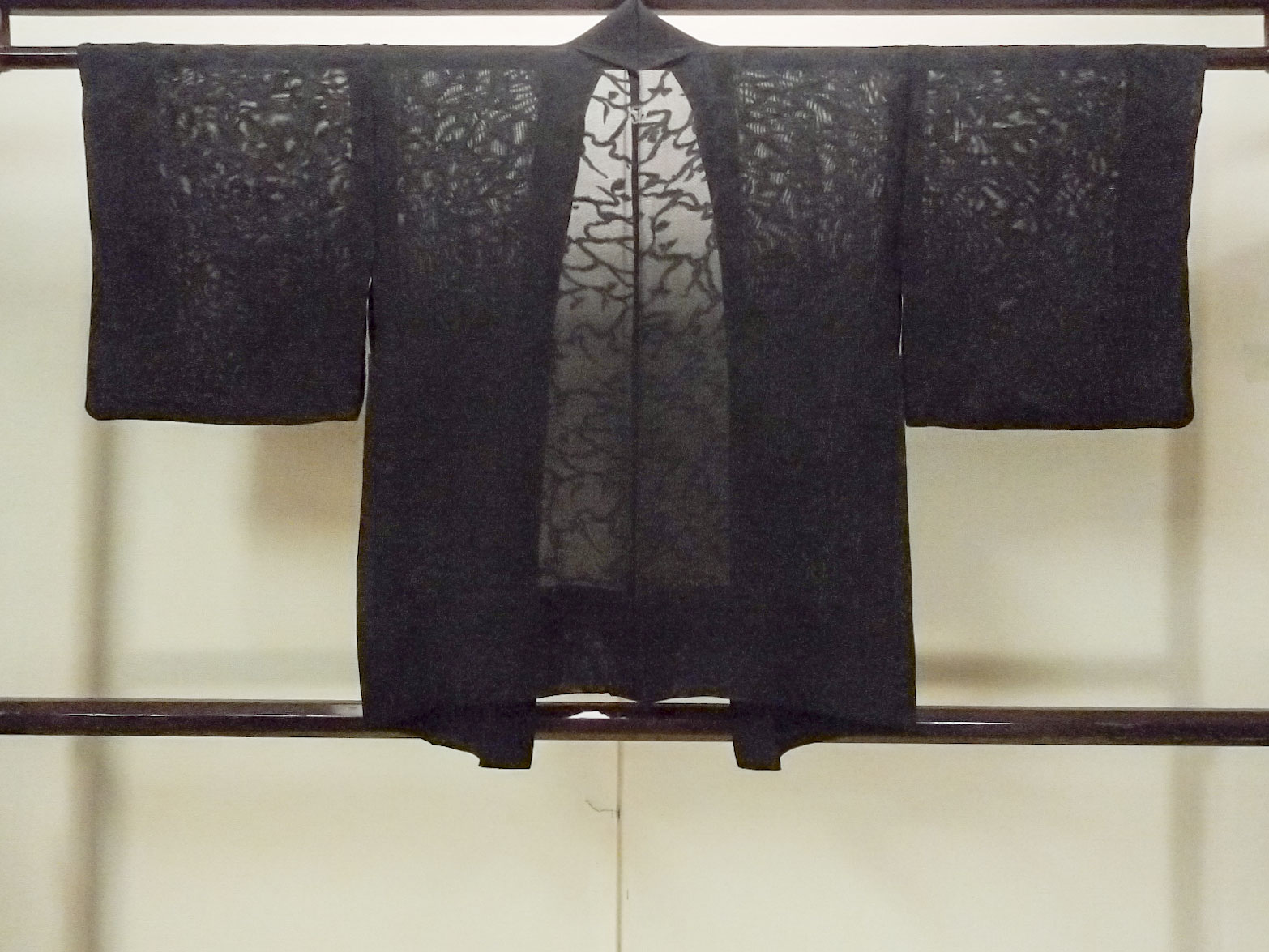 O0909R 女性用羽織 シルク(正絹) 黒, つた 【中古】【USED】【リサイクル】 ★★★★☆【O0909R】 [O0909R]