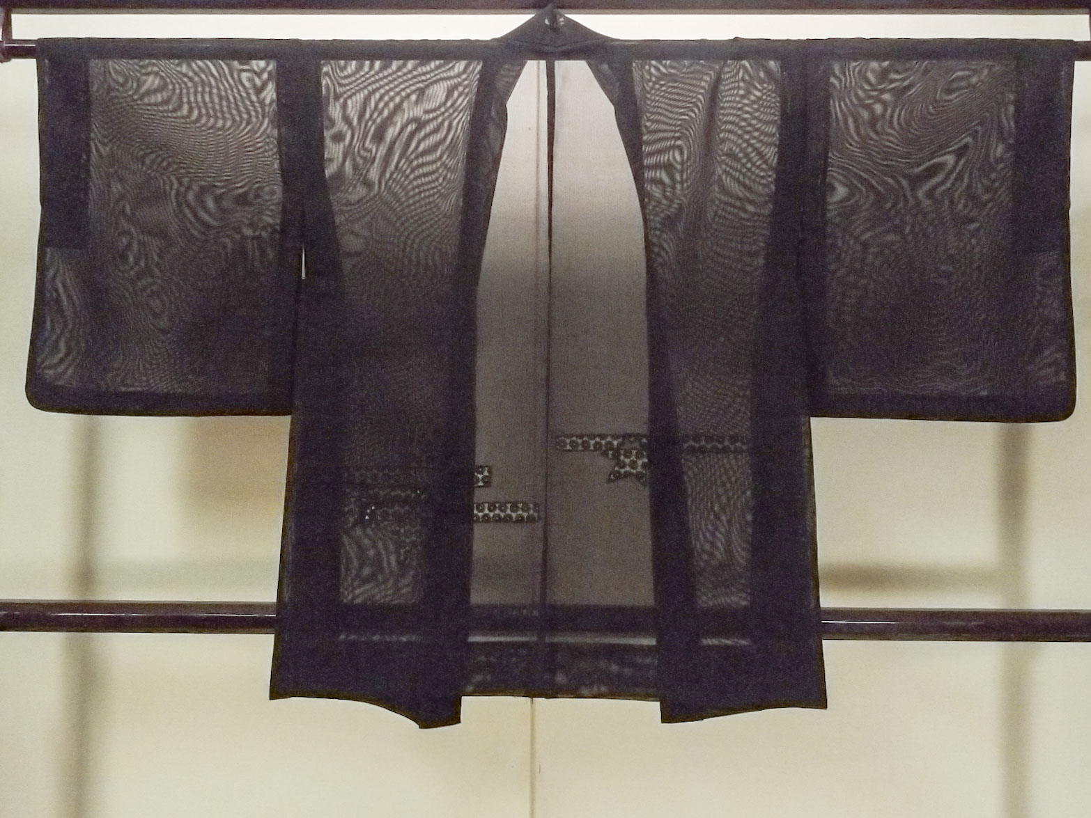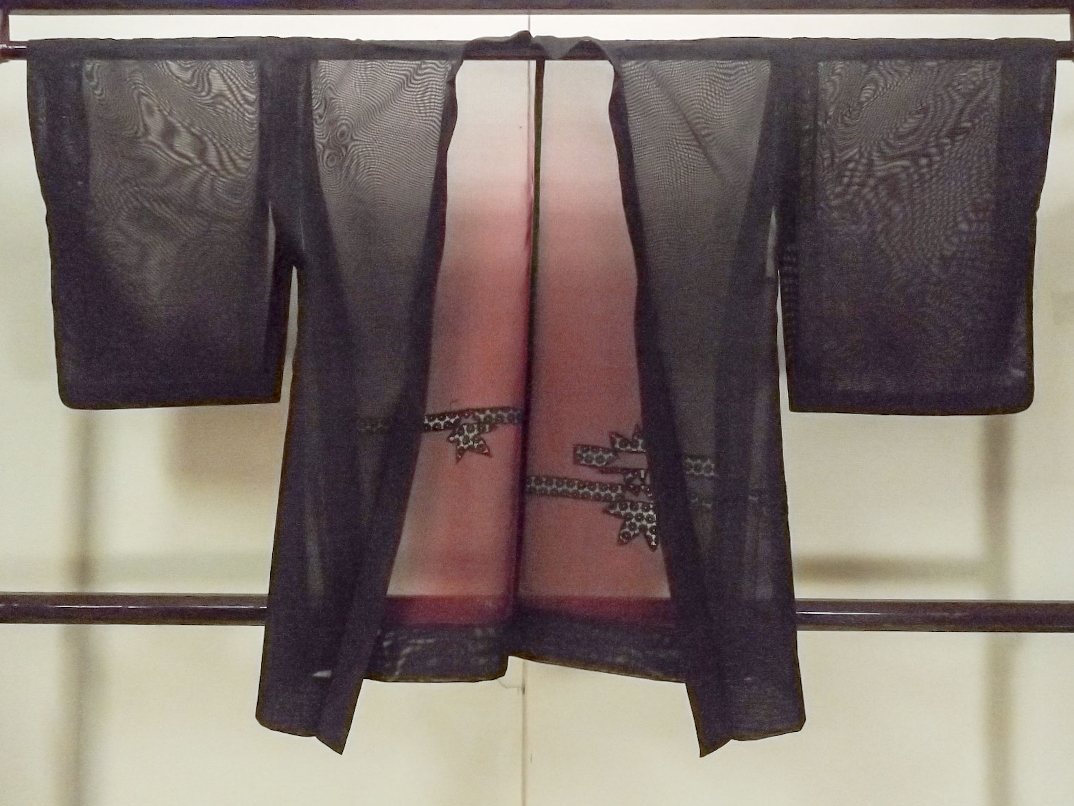 O0909T 女性用羽織 シルク(正絹) 黒, 花 【中古】【USED】【リサイクル】 ★★★★☆【O0909T】 [O0909T]