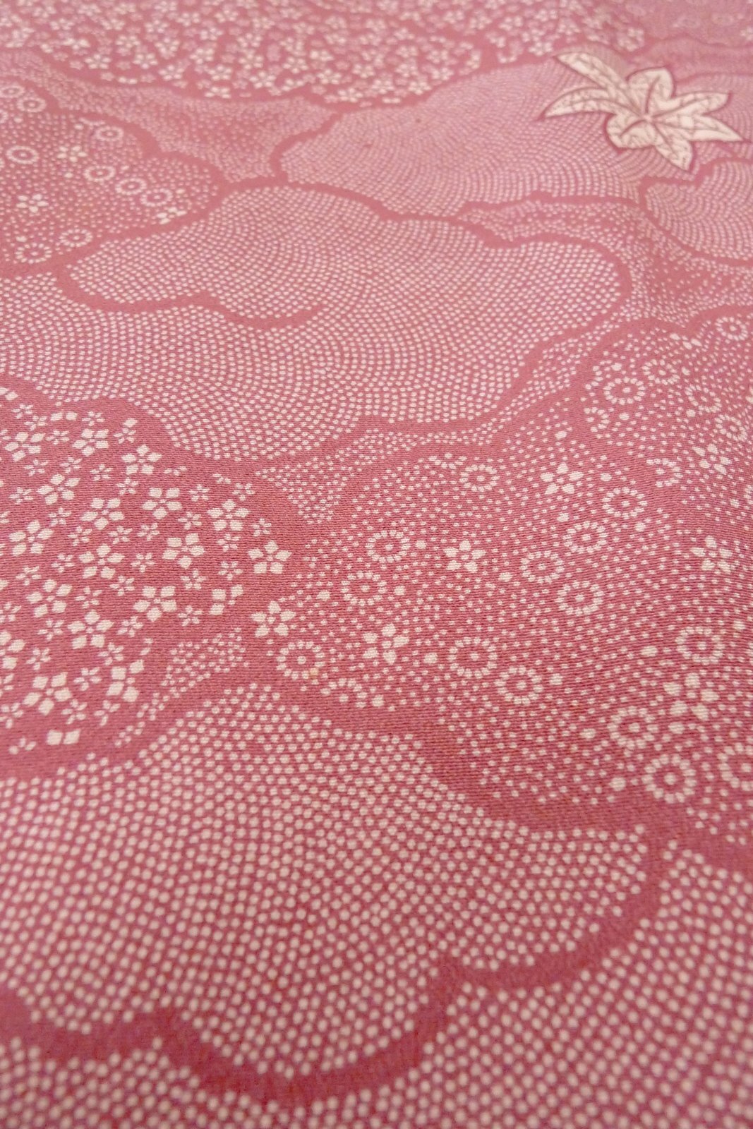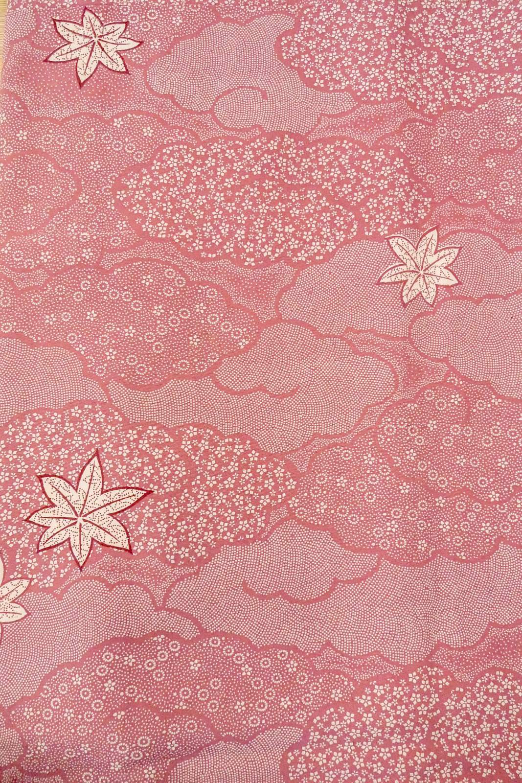 O1002E 女性用 小紋 シルク(正絹) 深い桃色, 花 【中古】【USED】【リサイクル】 ★★☆☆☆【O1002E】 [O1002E]