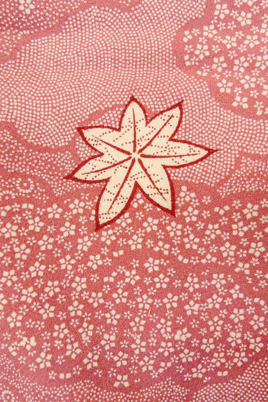 O1002E 女性用 小紋 シルク(正絹) 深い桃色, 花 【中古】【USED】【リサイクル】 ★★☆☆☆【O1002E】