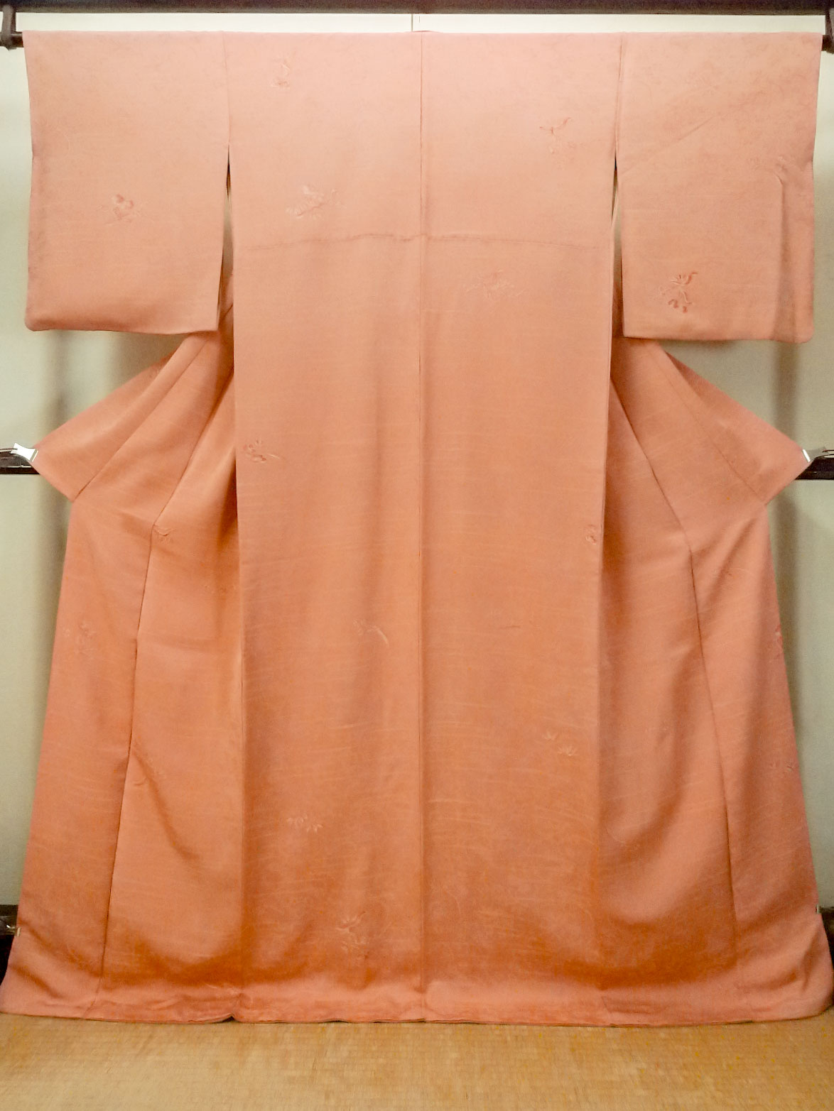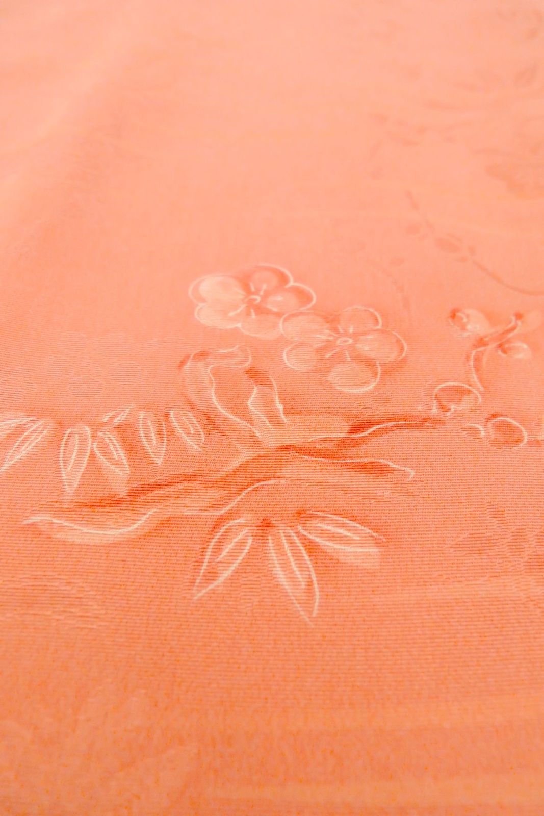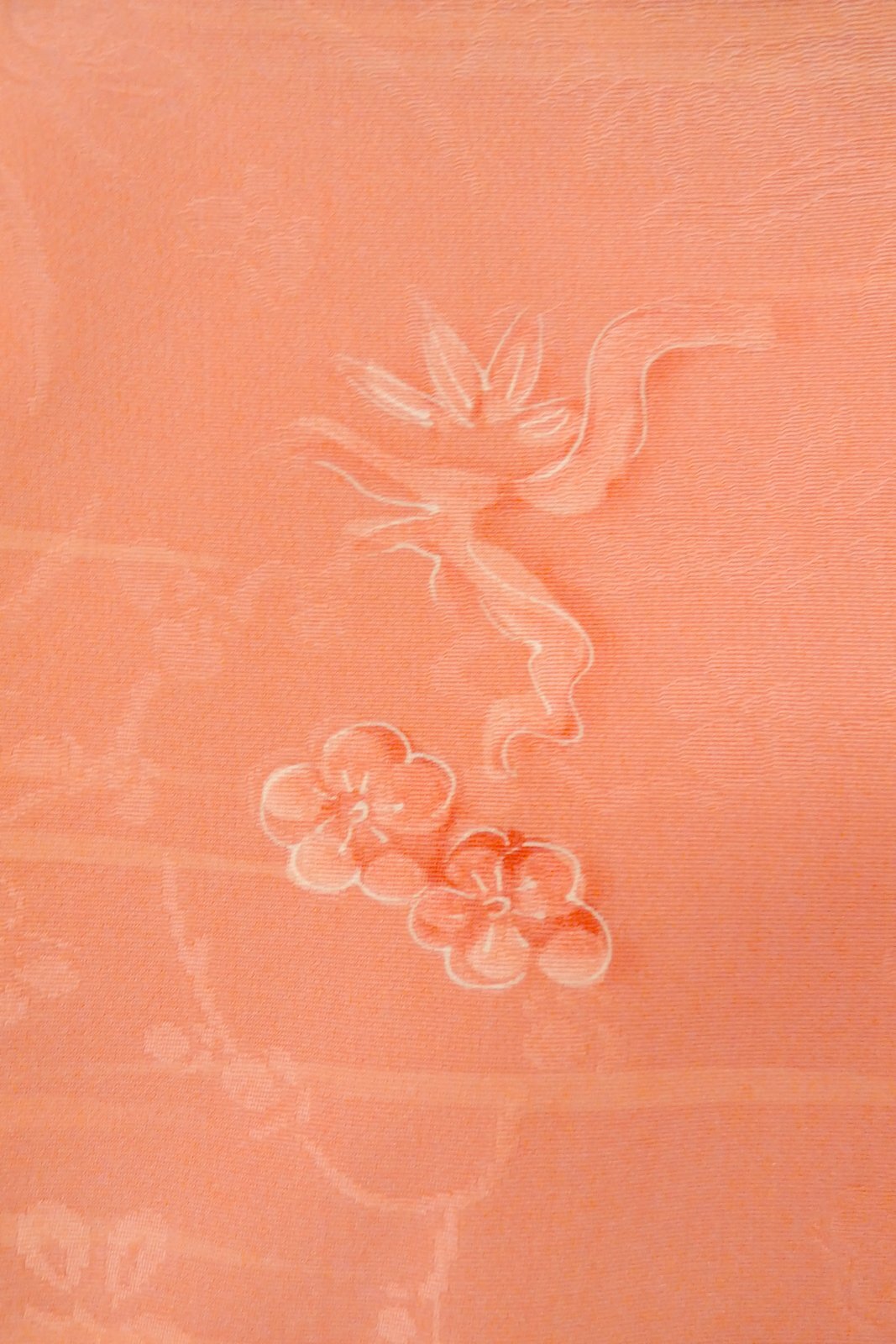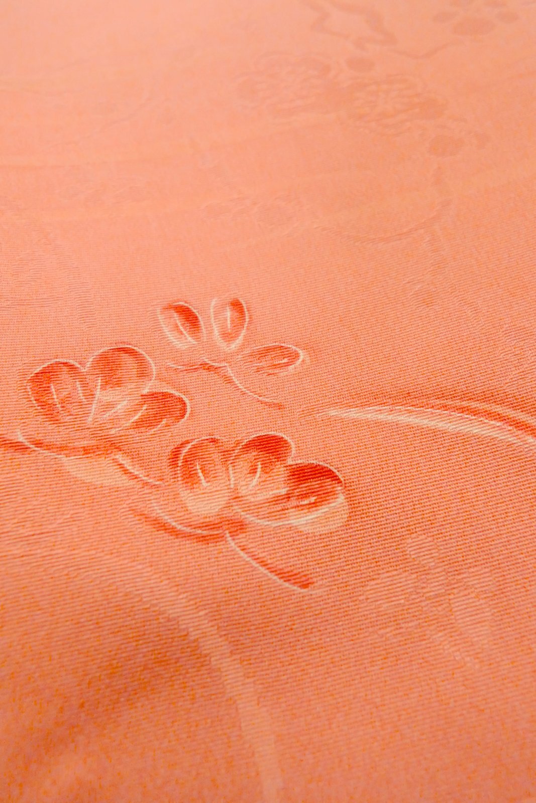 O1002F 女性用 色無地 シルク(正絹) 珊瑚色, 梅 【中古】【USED】【リサイクル】 ★★★★☆【O1002F】