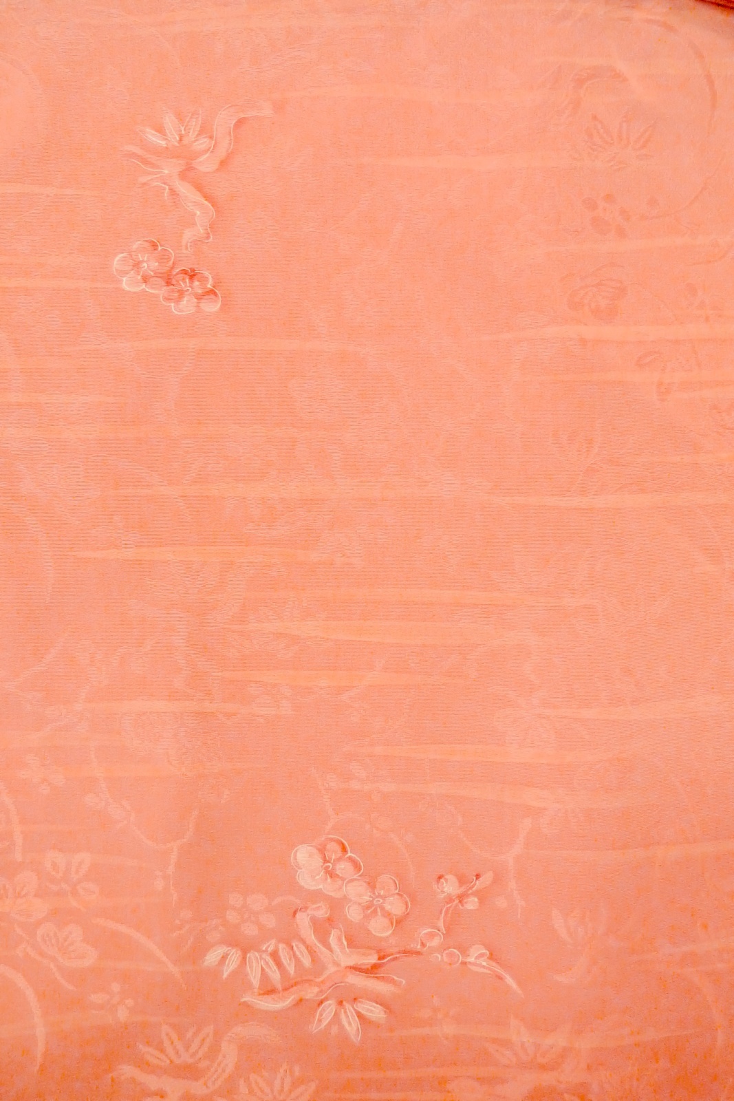 O1002F 女性用 色無地 シルク(正絹) 珊瑚色, 梅 【中古】【USED】【リサイクル】 ★★★★☆【O1002F】 [O1002F]