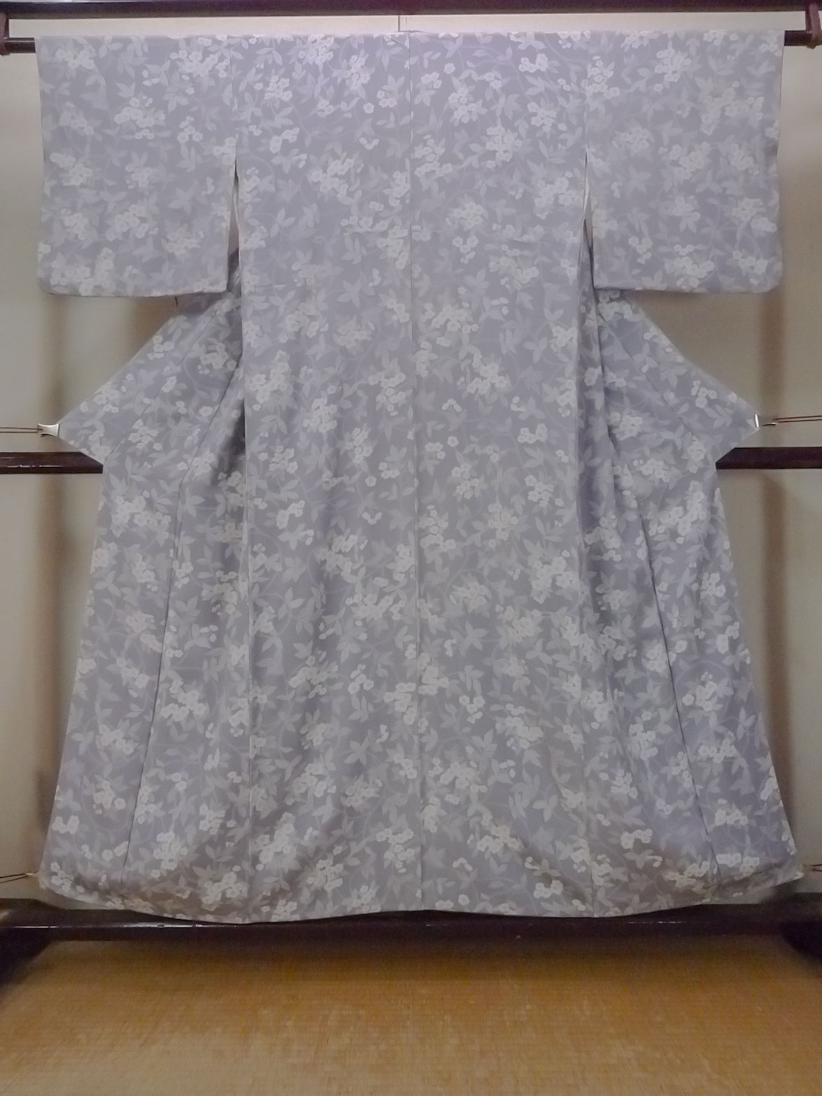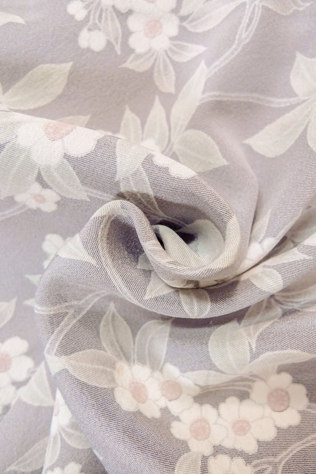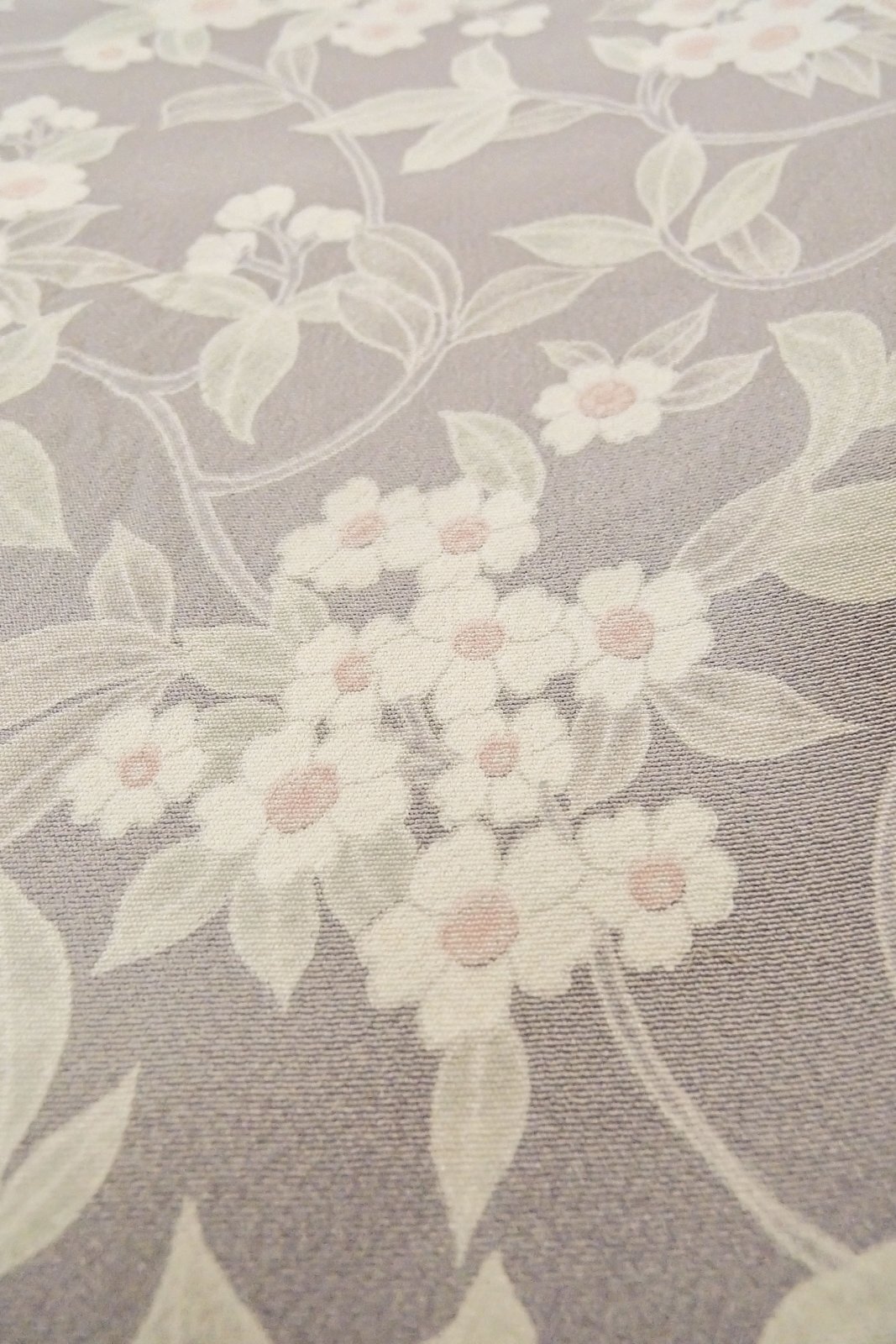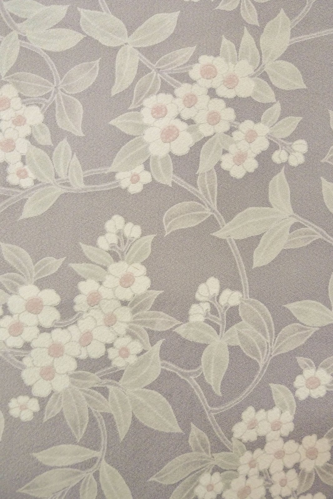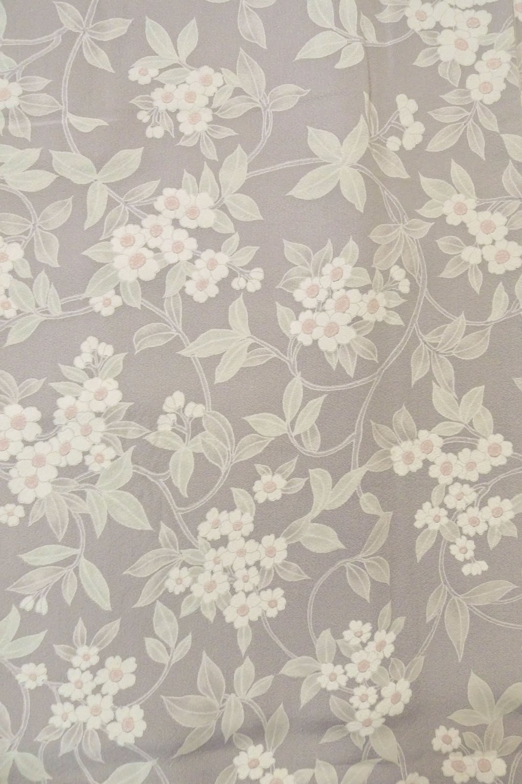 O1002H 女性用 小紋 シルク(正絹) 淡い灰色がかった藤色, 花 【中古】【USED】【リサイクル】 ★★☆☆☆【O1002H】
