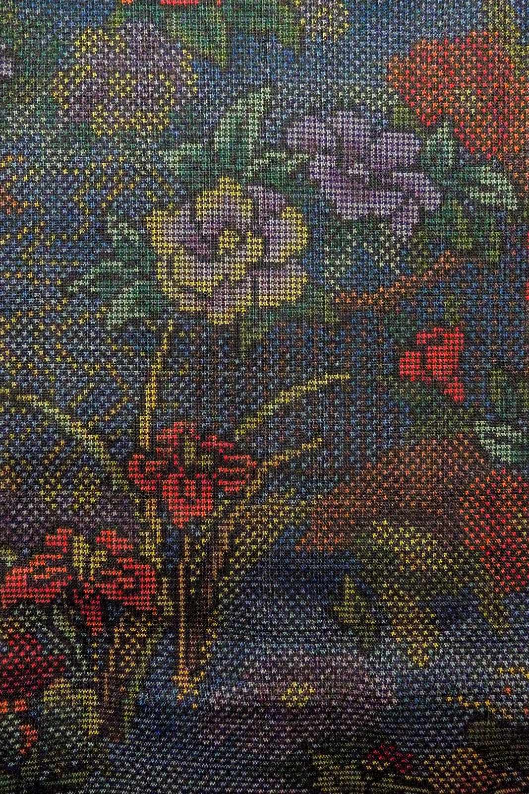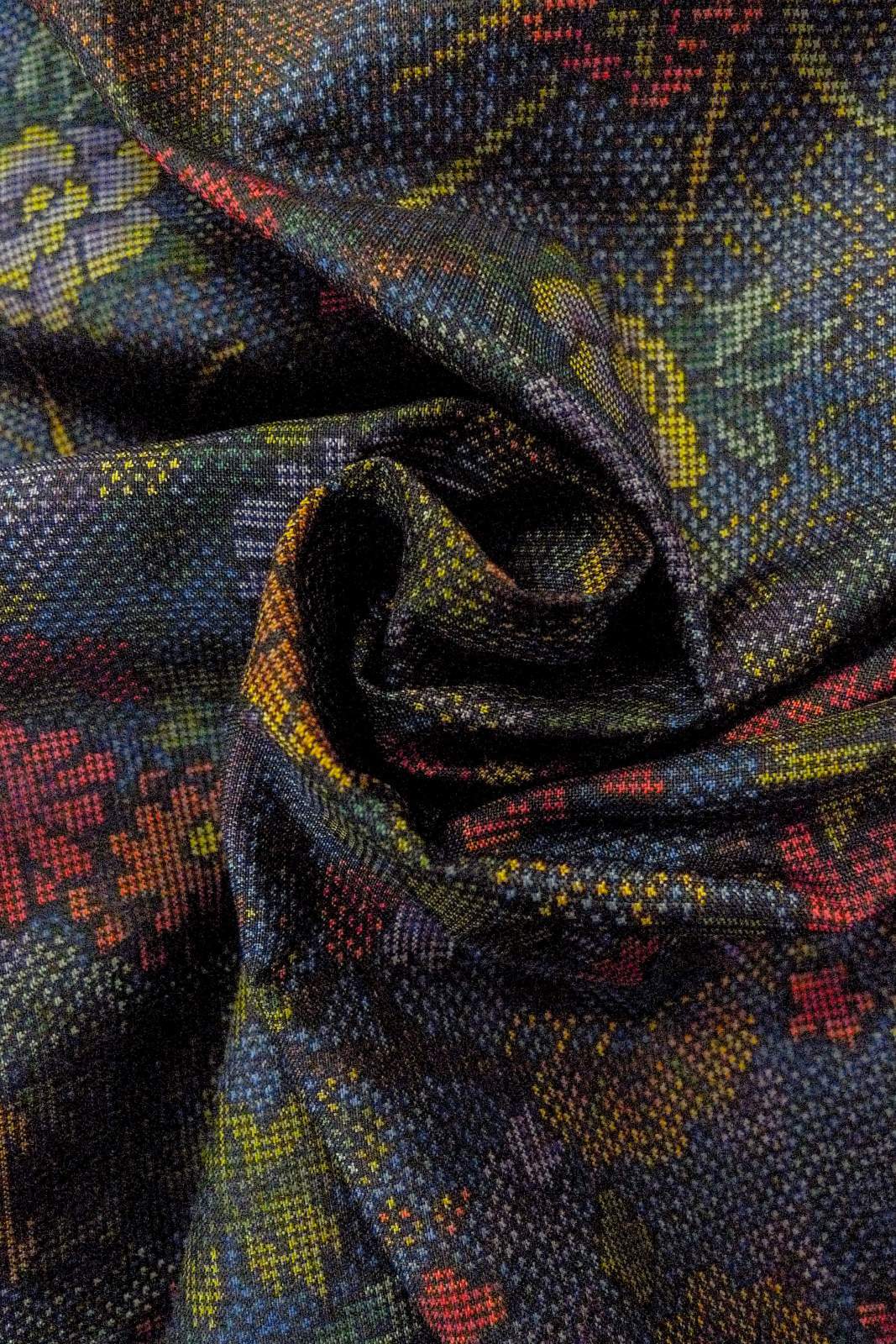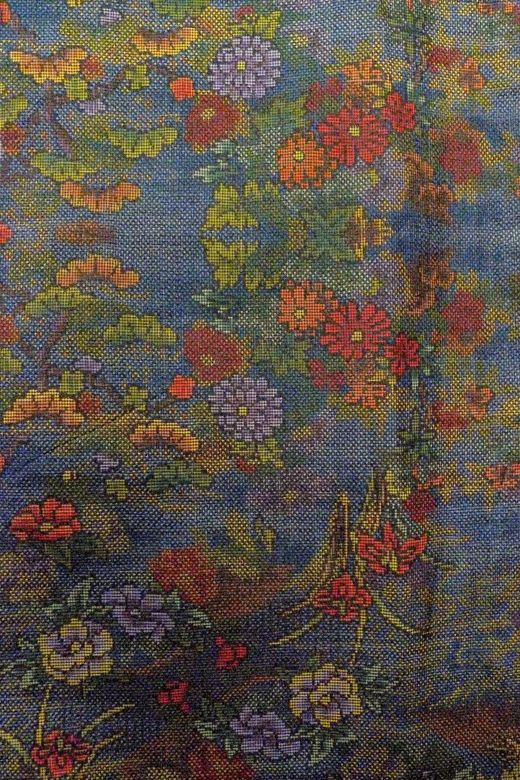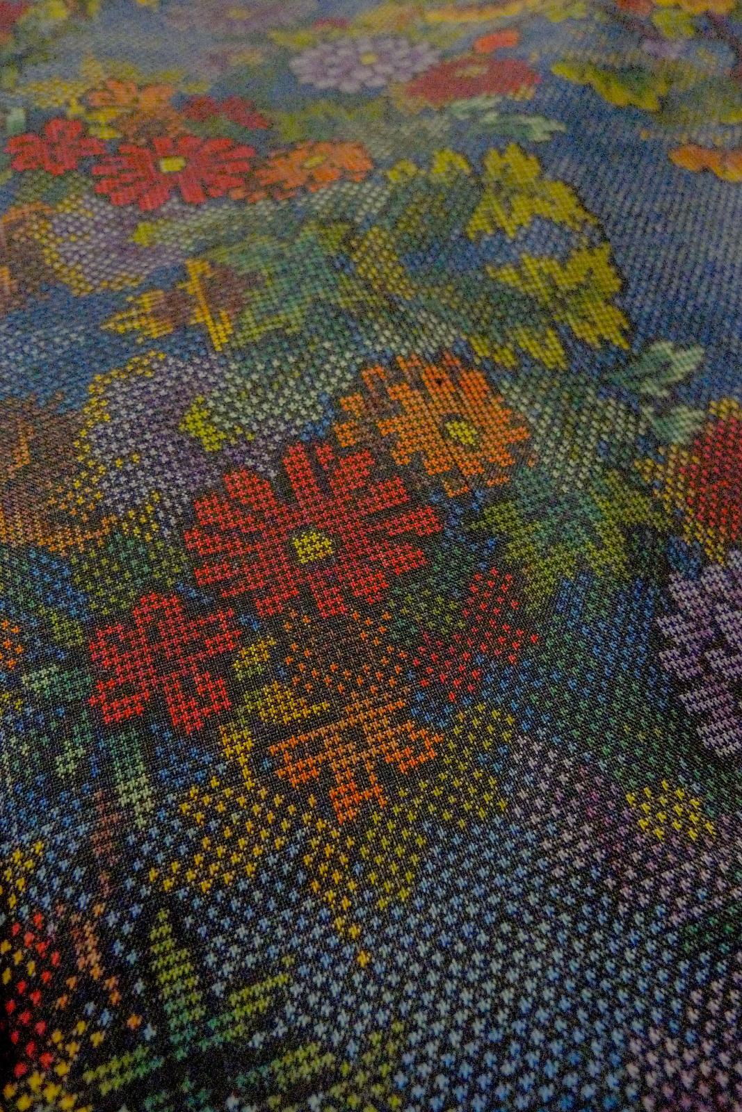 O1002L 女性用 紬 シルク(正絹) 深いマルチカラー, ぼたん 【中古】【USED】【リサイクル】 ★★★★☆【O1002L】