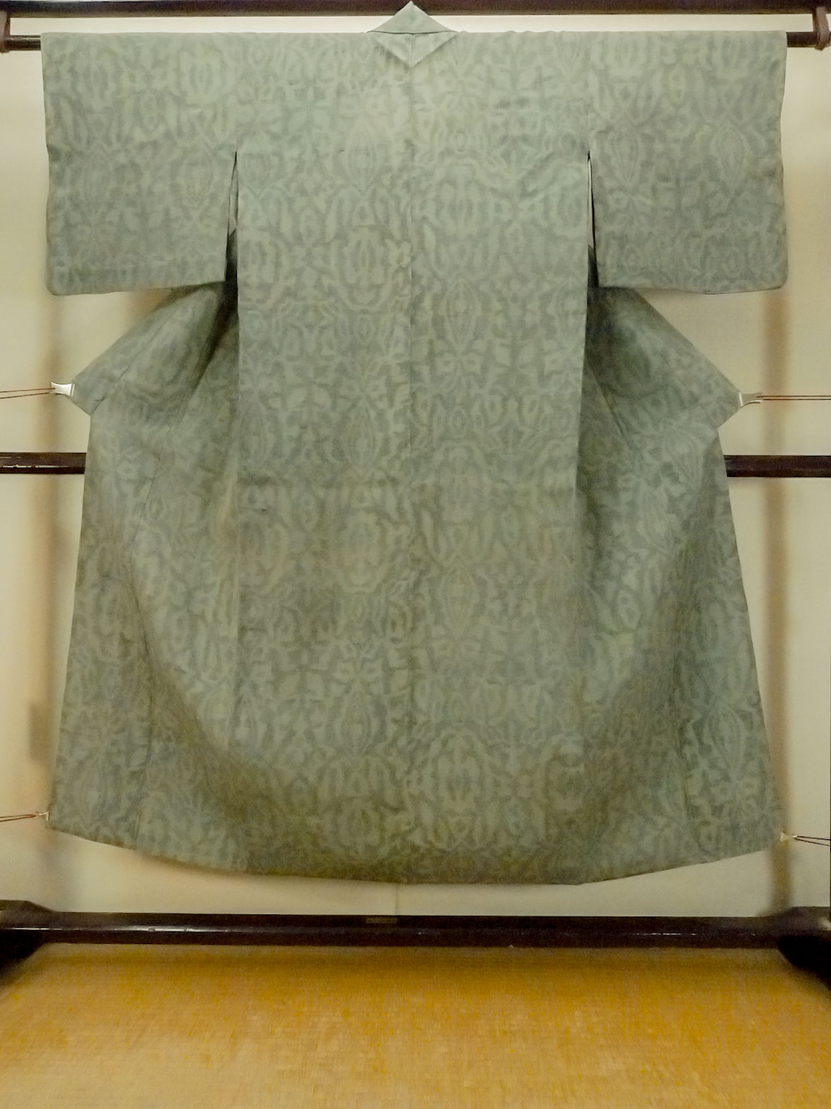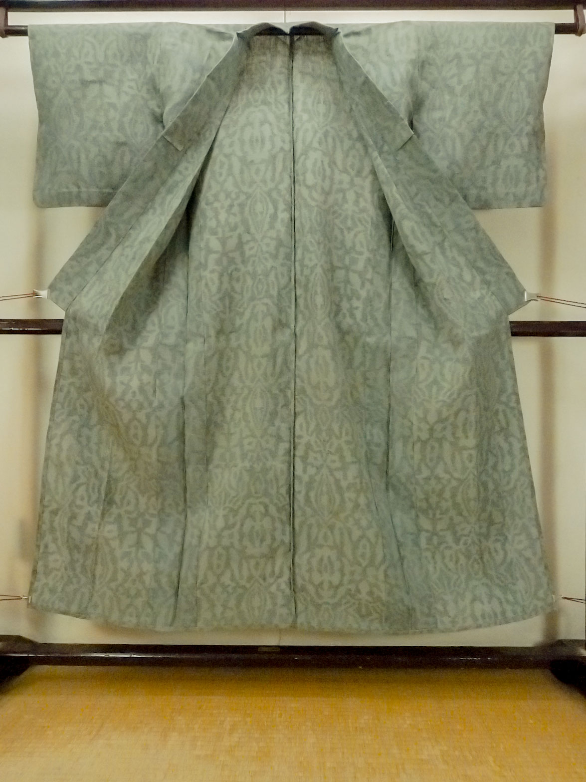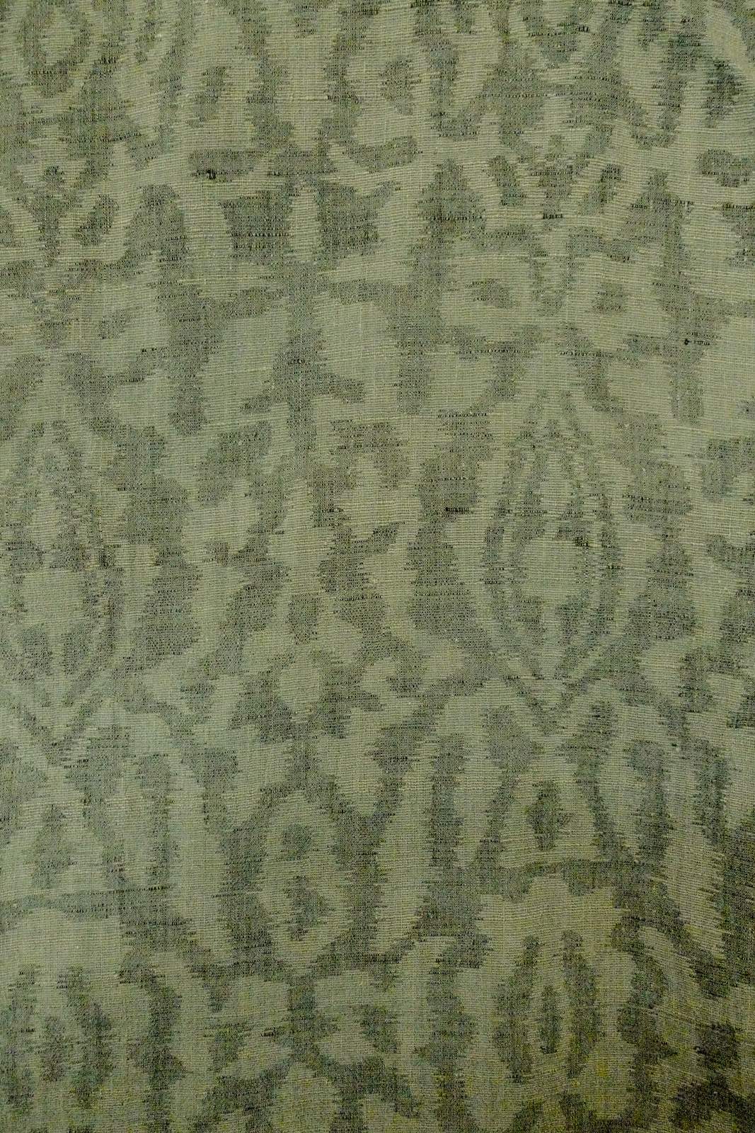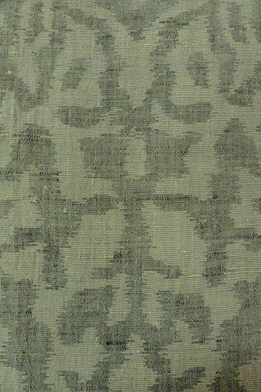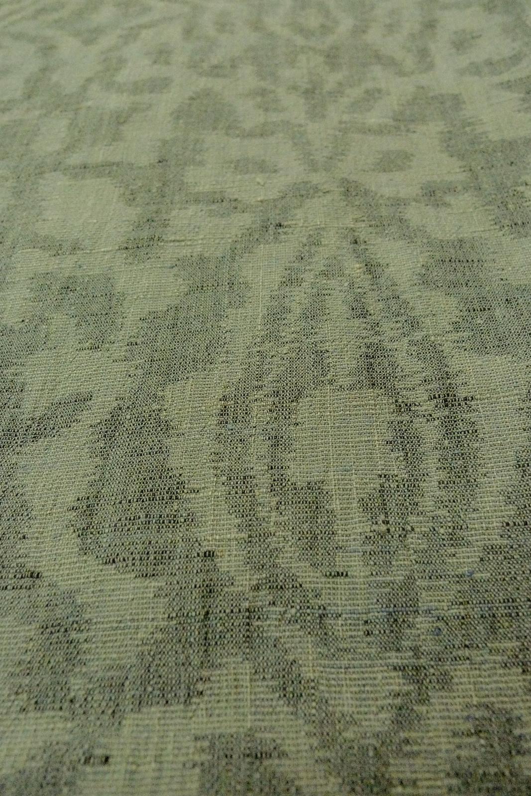 O1002O 女性用 紬 麻 灰色がかった緑色, 更紗 【中古】【USED】【リサイクル】 ★☆☆☆☆【O1002O】 [O1002O]