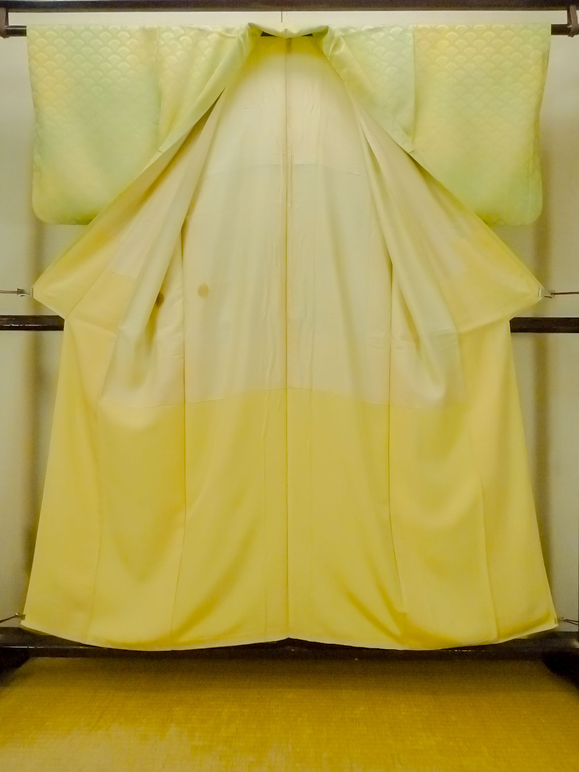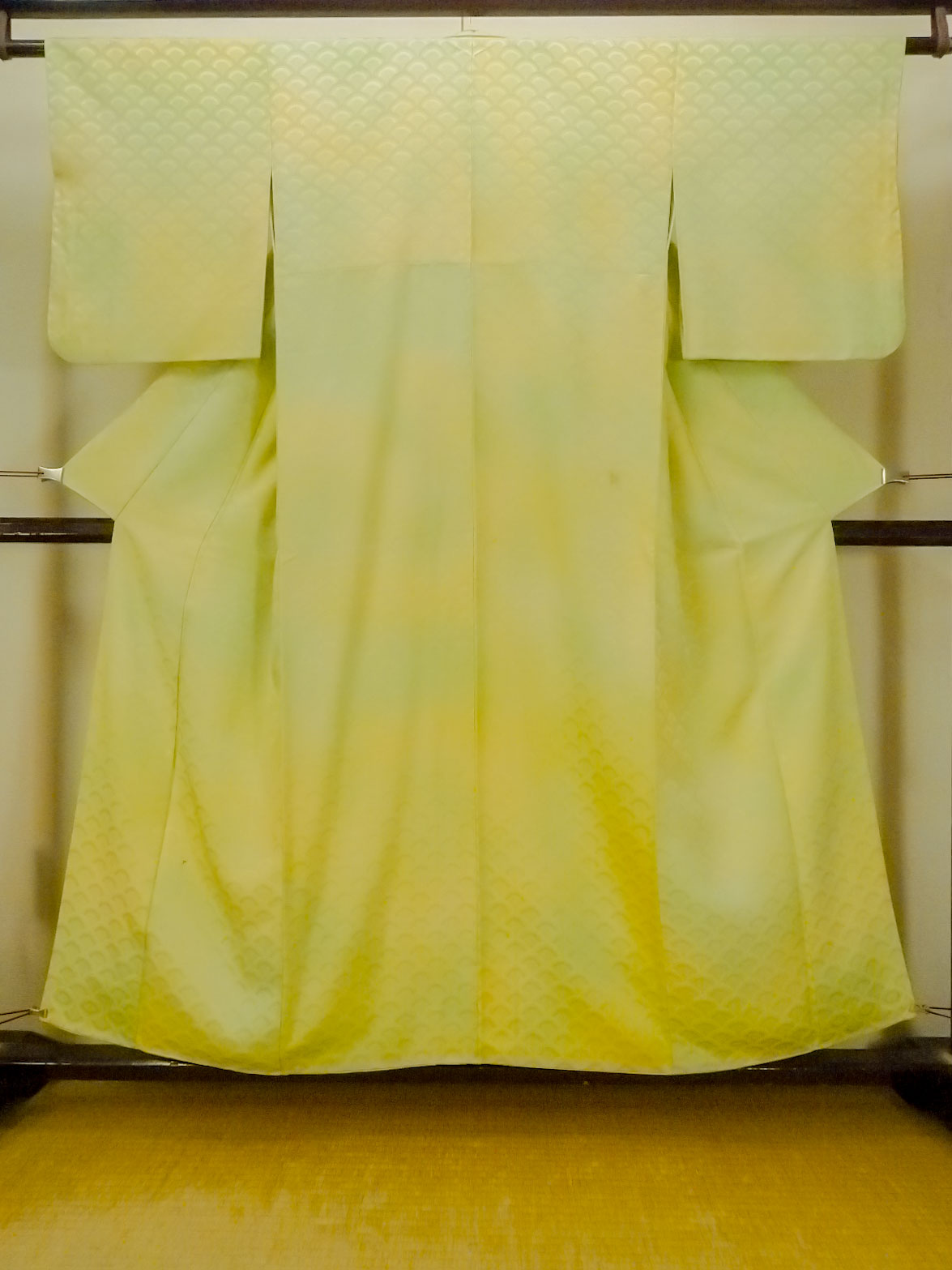 O1002T 女性用 色無地 シルク(正絹) 光沢のある薄い黄緑色, 【中古】【USED】【リサイクル】 ★★☆☆☆【O1002T】 [O1002T]