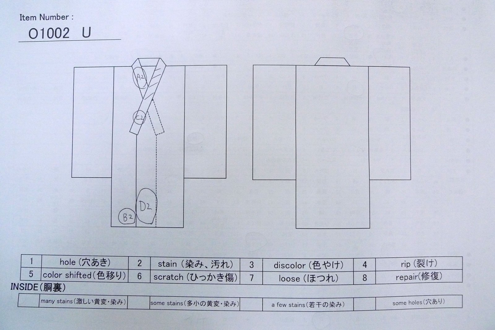 こちらの商品は中古の古着になります。シミ・傷等の写真はあくまでもご参考程度にお願いします。写真に写っていないダメージがありましても、「中古品」「難あり」「訳あり」ということをご了解の上、ノークレームでご購入下さいませ。