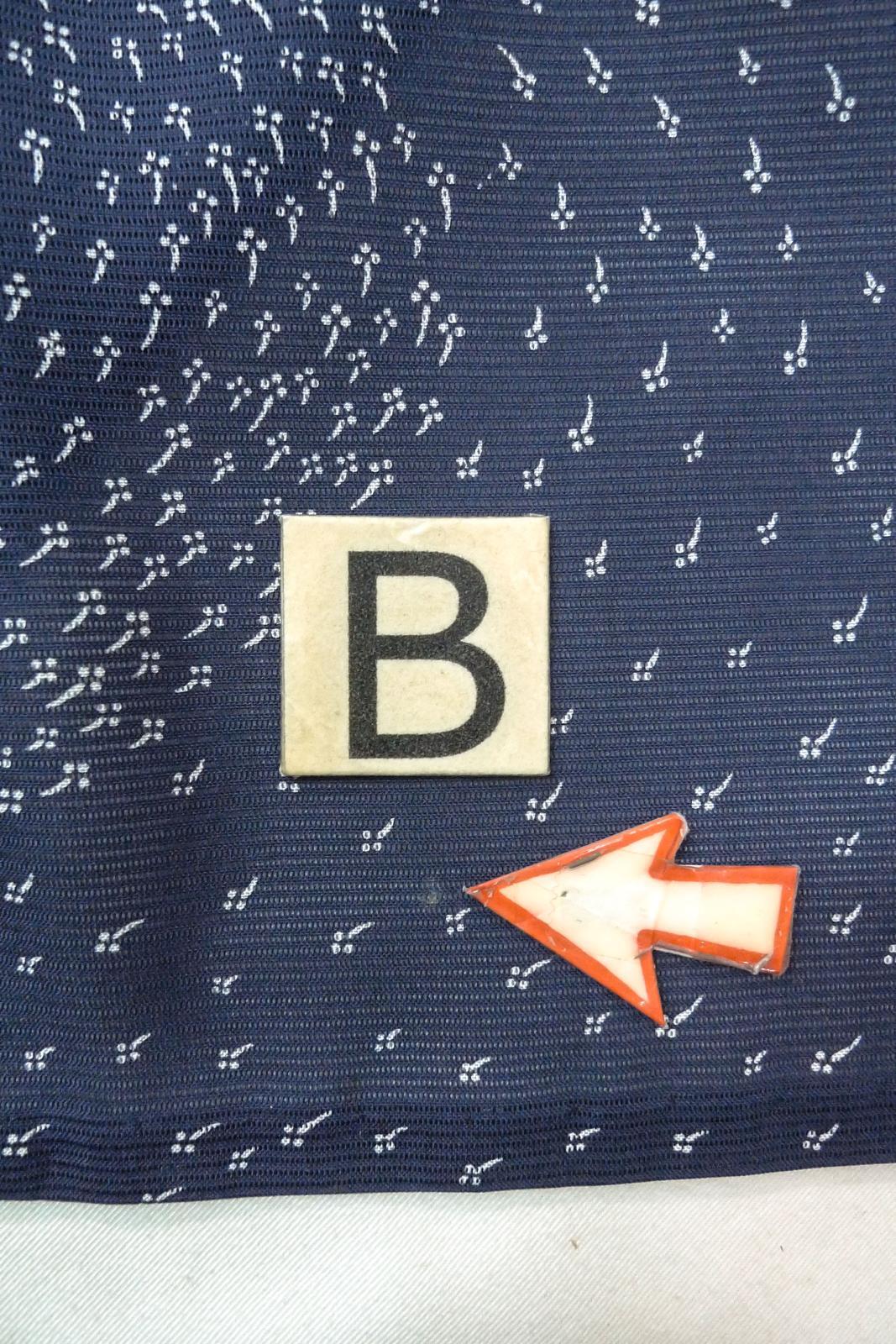 O1002U 女性用 単衣 シルク(正絹) 深い藍, 抽象的模様 【中古】【USED】【リサイクル】 ★★☆☆☆【O1002U】