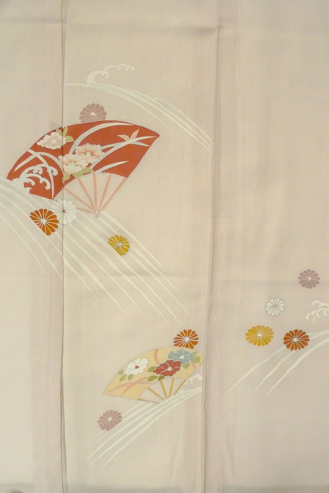 O1002V 女性用 付下げ シルク(正絹) 薄い灰色がかった桃色, 菊 【中古】【USED】【リサイクル】 ★★☆☆☆【O1002V】