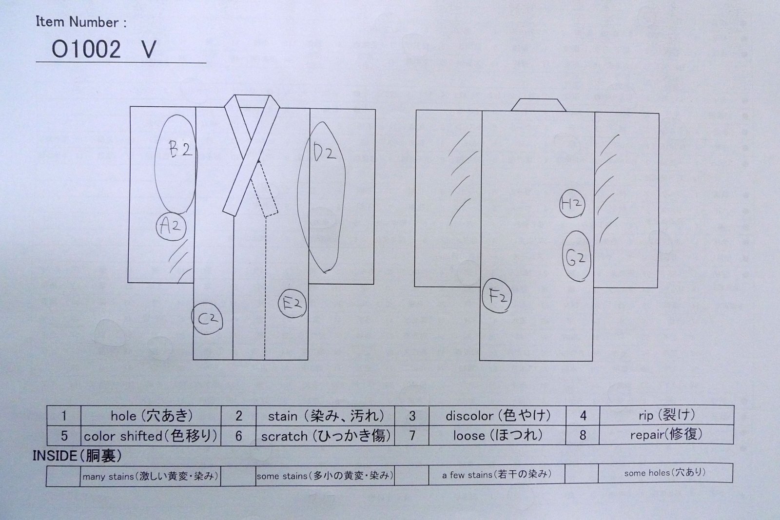 その他 : 全体的に汚れ、染みあり。