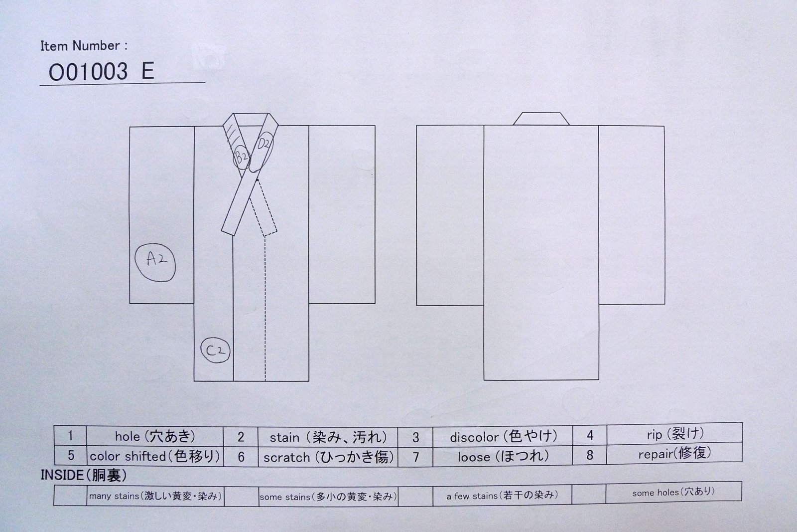 | 身丈[肩から] : | 59" | 身丈:150cm (3 尺 9 寸 6 分) | ||