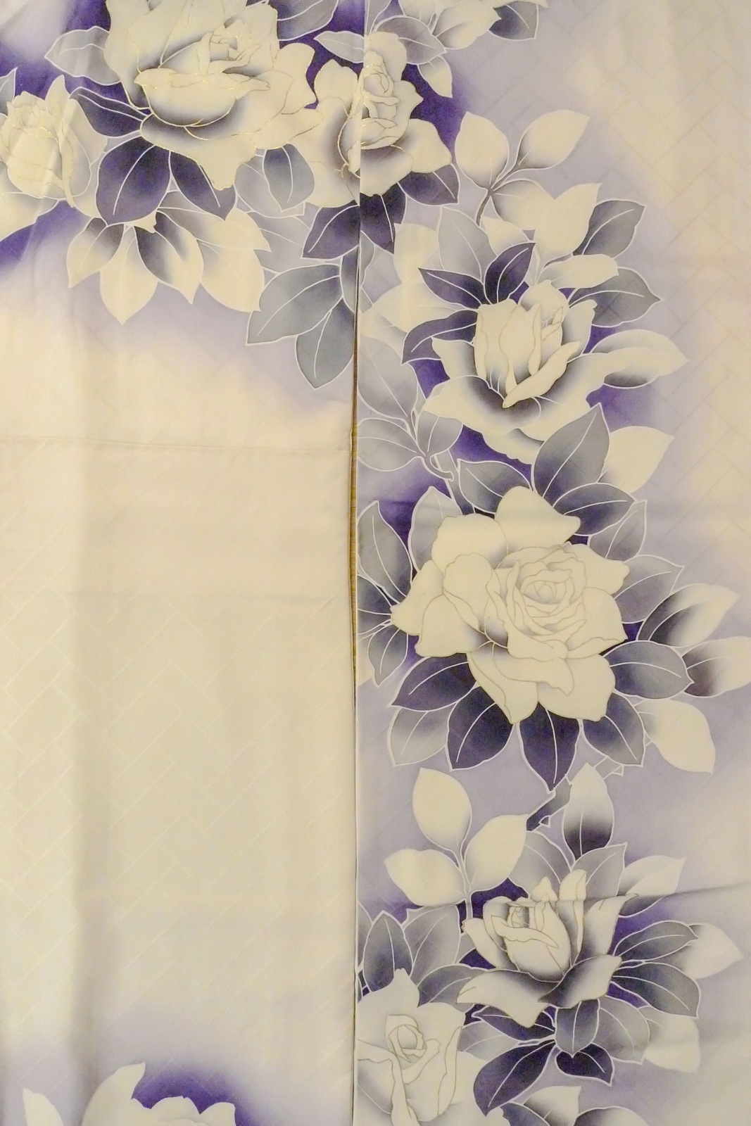 O1126B 女性用 振袖 シルク(正絹) 白, バラ 【中古】【USED】【リサイクル】 ★★★☆☆【O1126B】