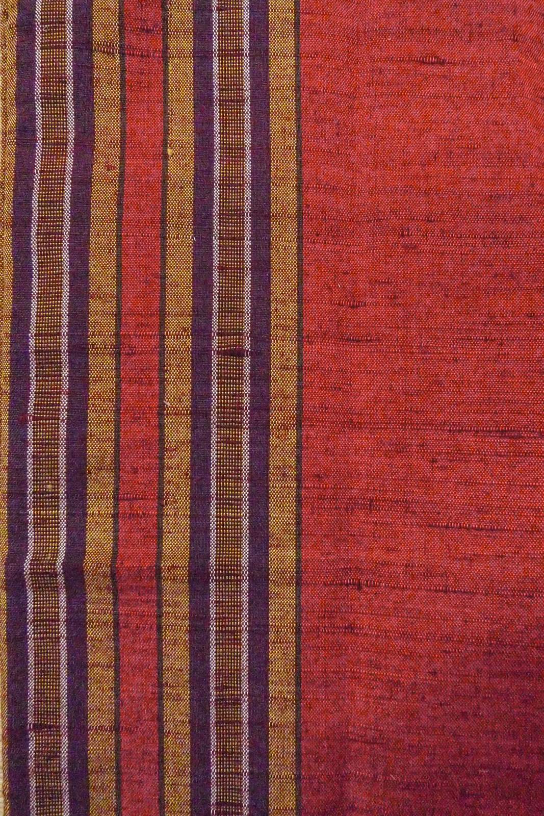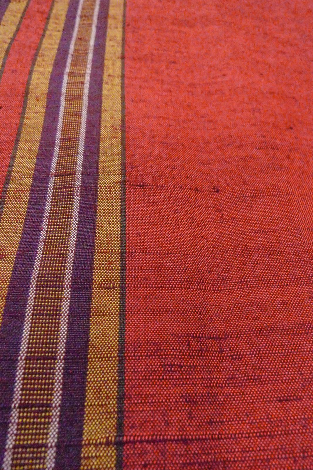 O1126H 女性用 紬 シルク(正絹) 鮮やか朱赤, 縞 【中古】【USED】【リサイクル】 ★★★★☆【O1126H】