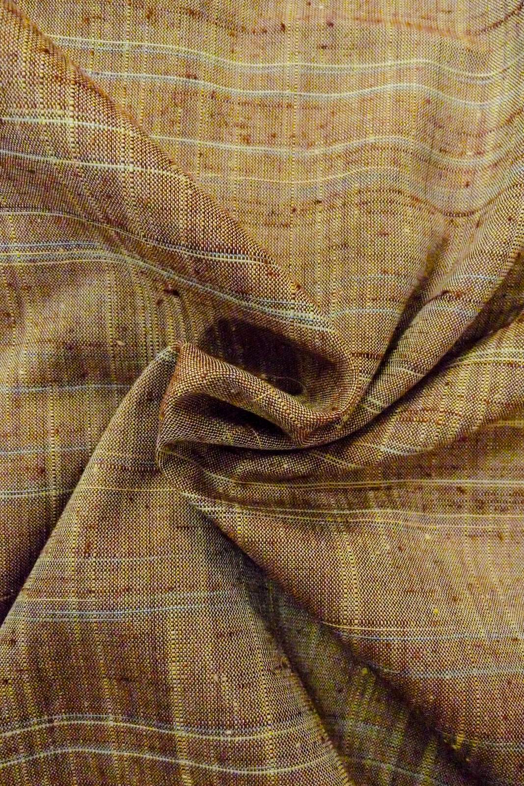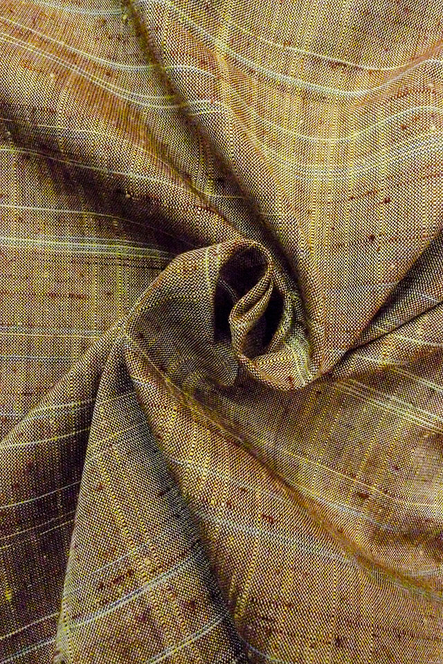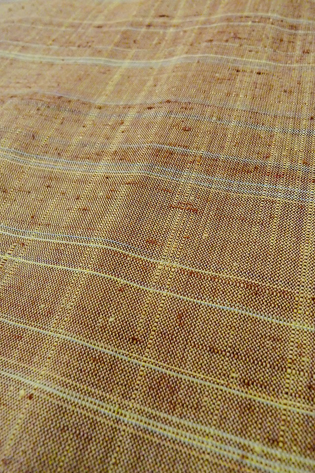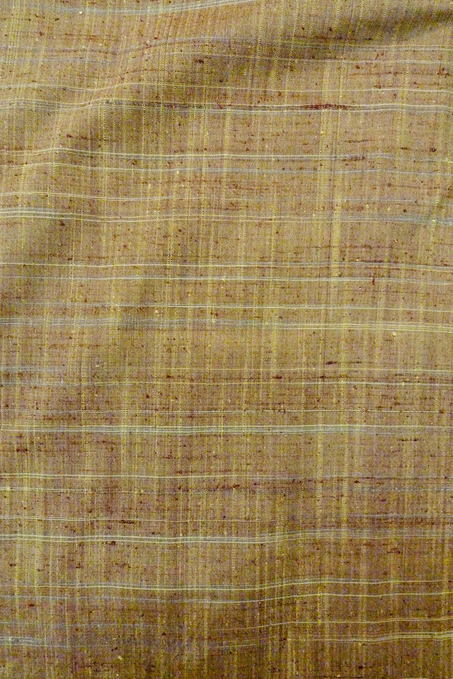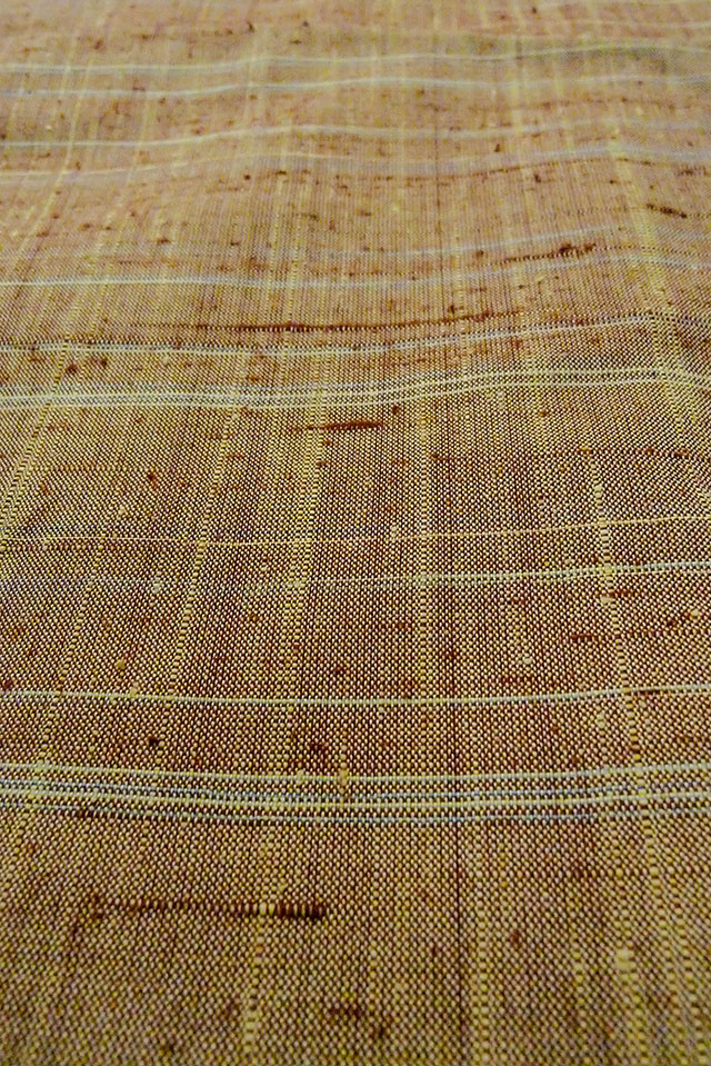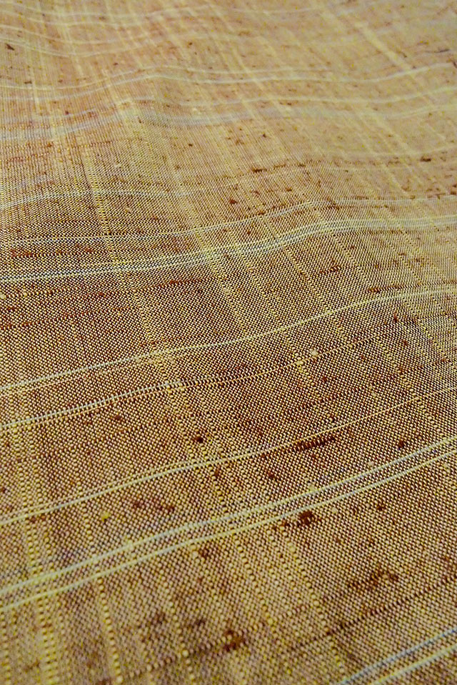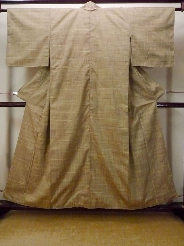 O1126I 女性用 紬 シルク(正絹) 淡い緑み茶色, チェック柄 【中古】【USED】【リサイクル】 ★★★★☆【O1126I】