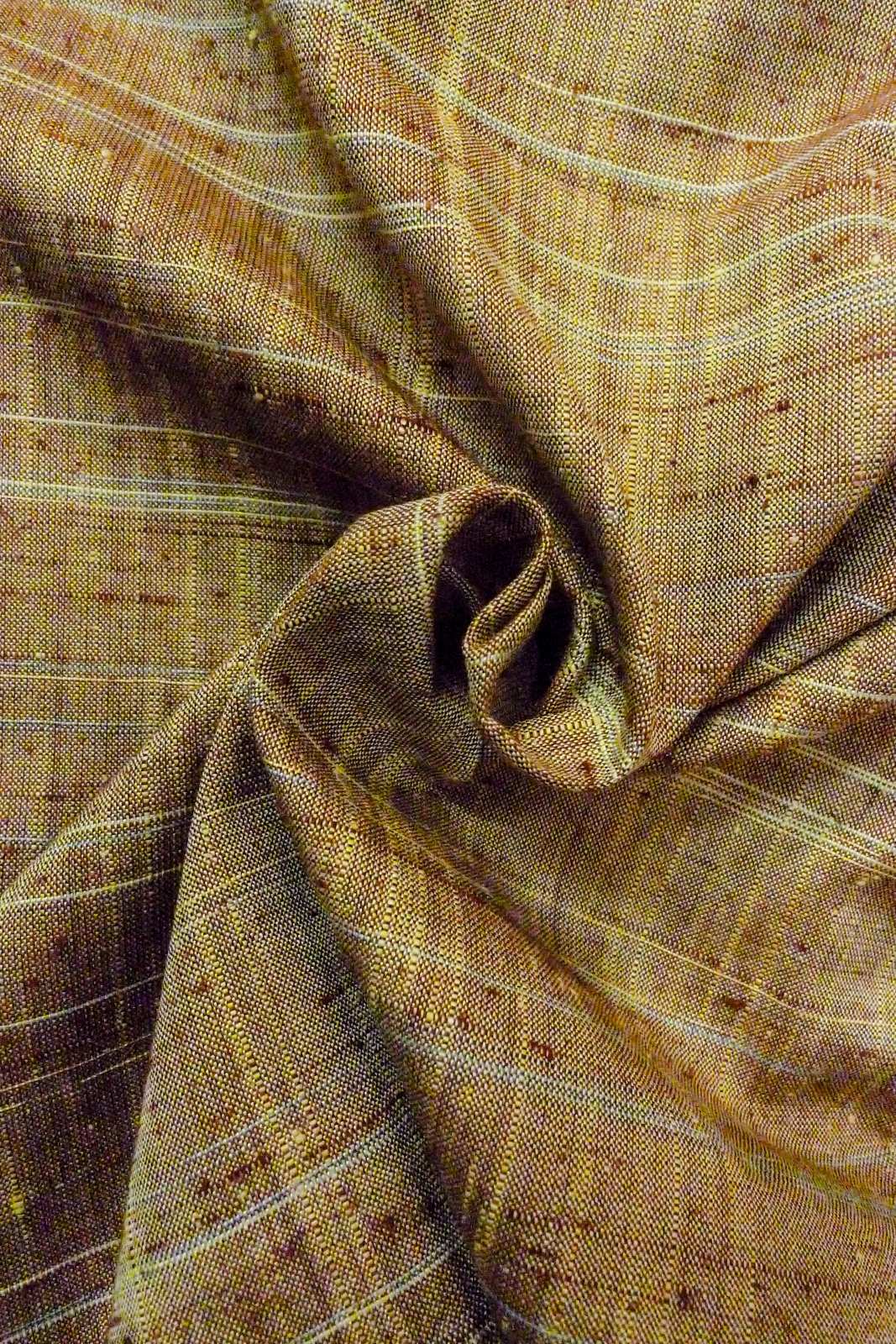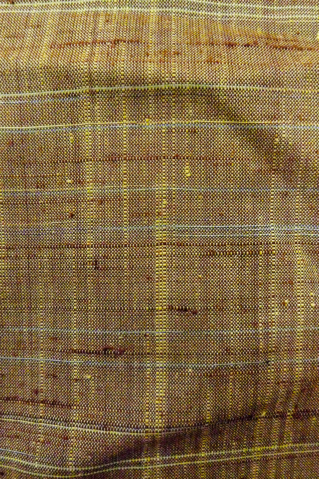 O1126I 女性用 紬 シルク(正絹) 淡い緑み茶色, チェック柄 【中古】【USED】【リサイクル】 ★★★★☆【O1126I】 [O1126I]