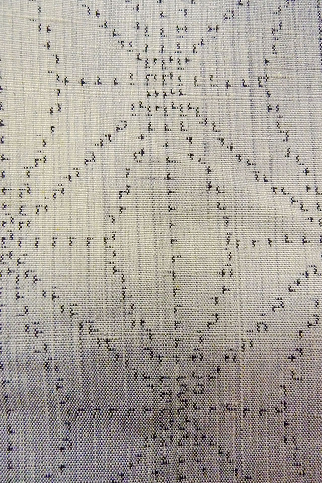O1126P 女性用 紬 十日町紬 シルク(正絹) 薄い灰色, 小さな点々 【中古】【USED】【リサイクル】 ★★☆☆☆【O1126P】