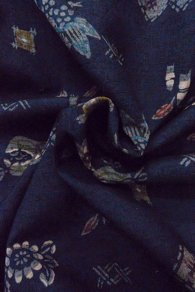 O1126T 女性用 紬 シルク(正絹) 藍, 花 【中古】【USED】【リサイクル】 ★★★★☆【O1126T】