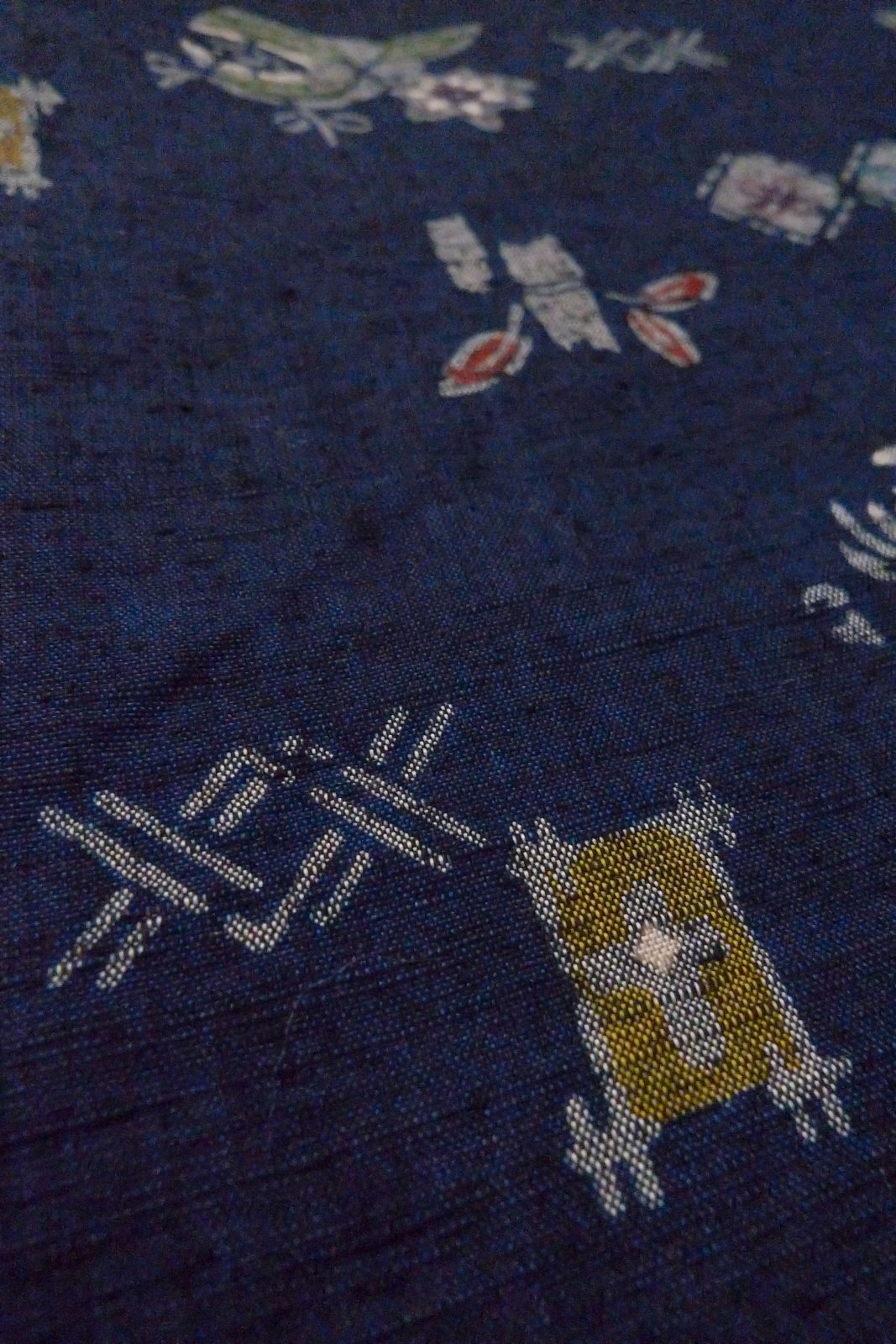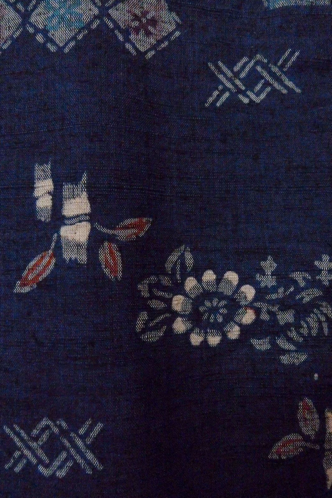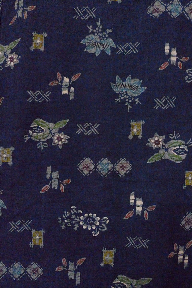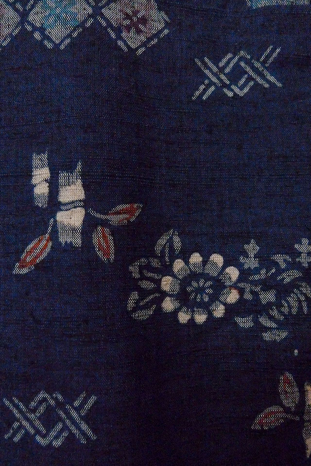 O1126T 女性用 紬 シルク(正絹) 藍, 花 【中古】【USED】【リサイクル】 ★★★★☆【O1126T】 [O1126T]