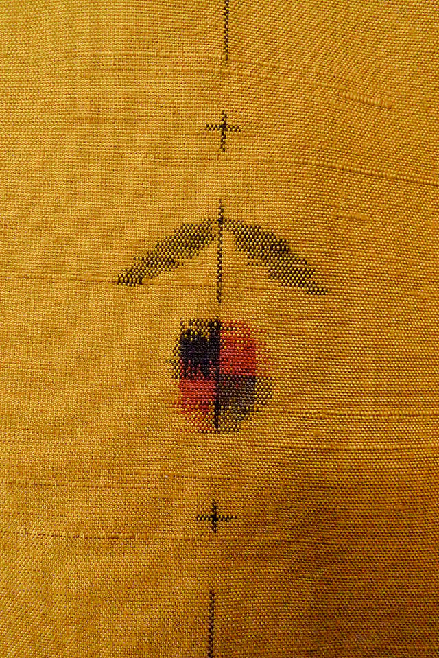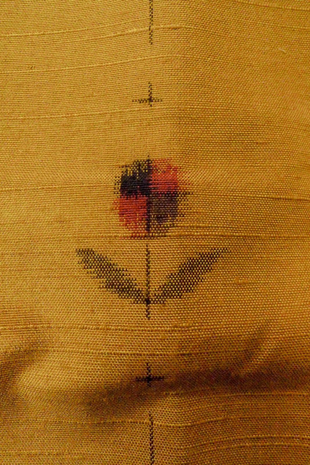 O1126X 女性用 紬 シルク(正絹) 深い黄色, 花 【中古】【USED】【リサイクル】 ★★★★☆【O1126X】 [O1126X]