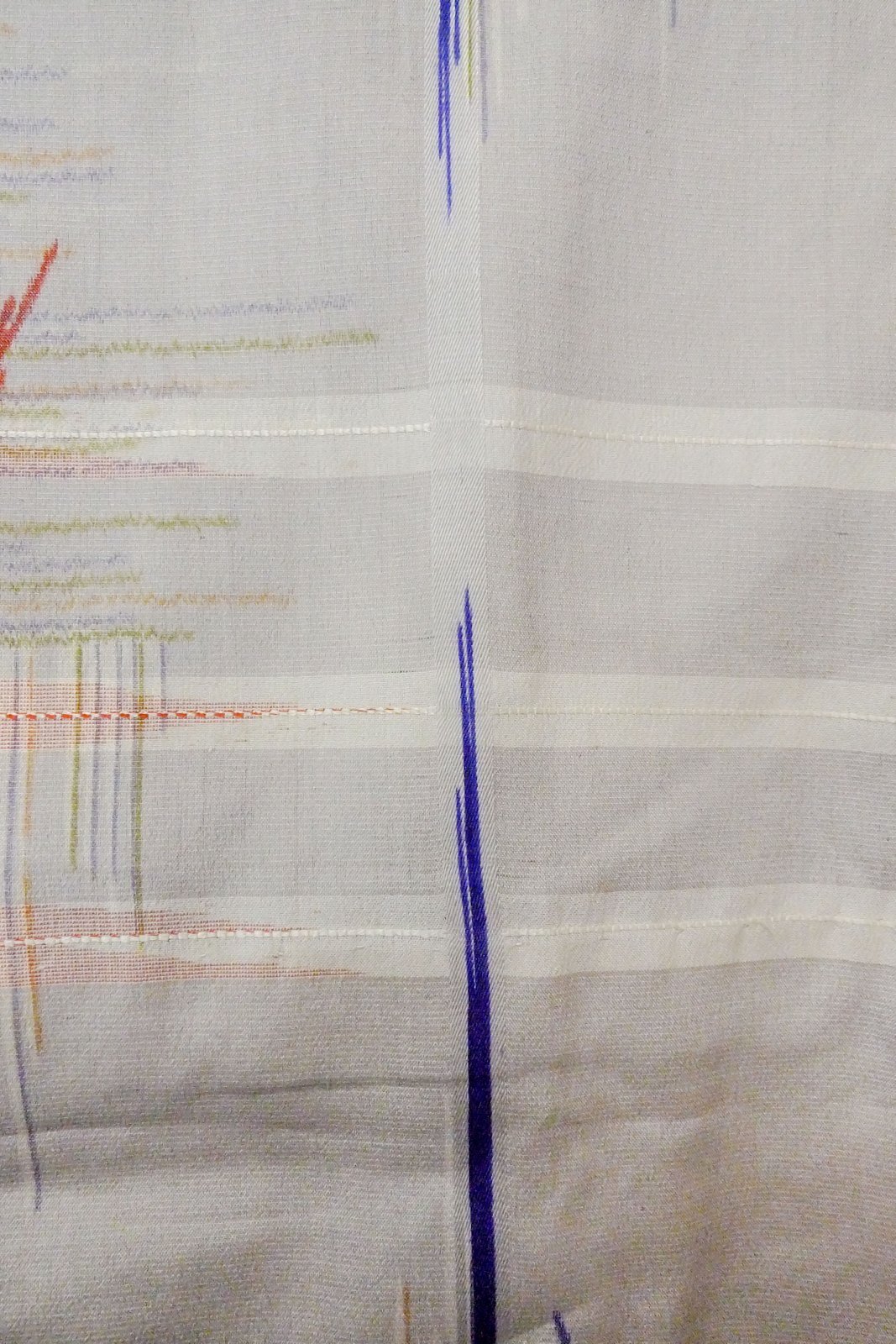O1127C 女性用 単衣 シルク(正絹) 薄い灰色, 線 【中古】【USED】【リサイクル】 ★☆☆☆☆【O1127C】