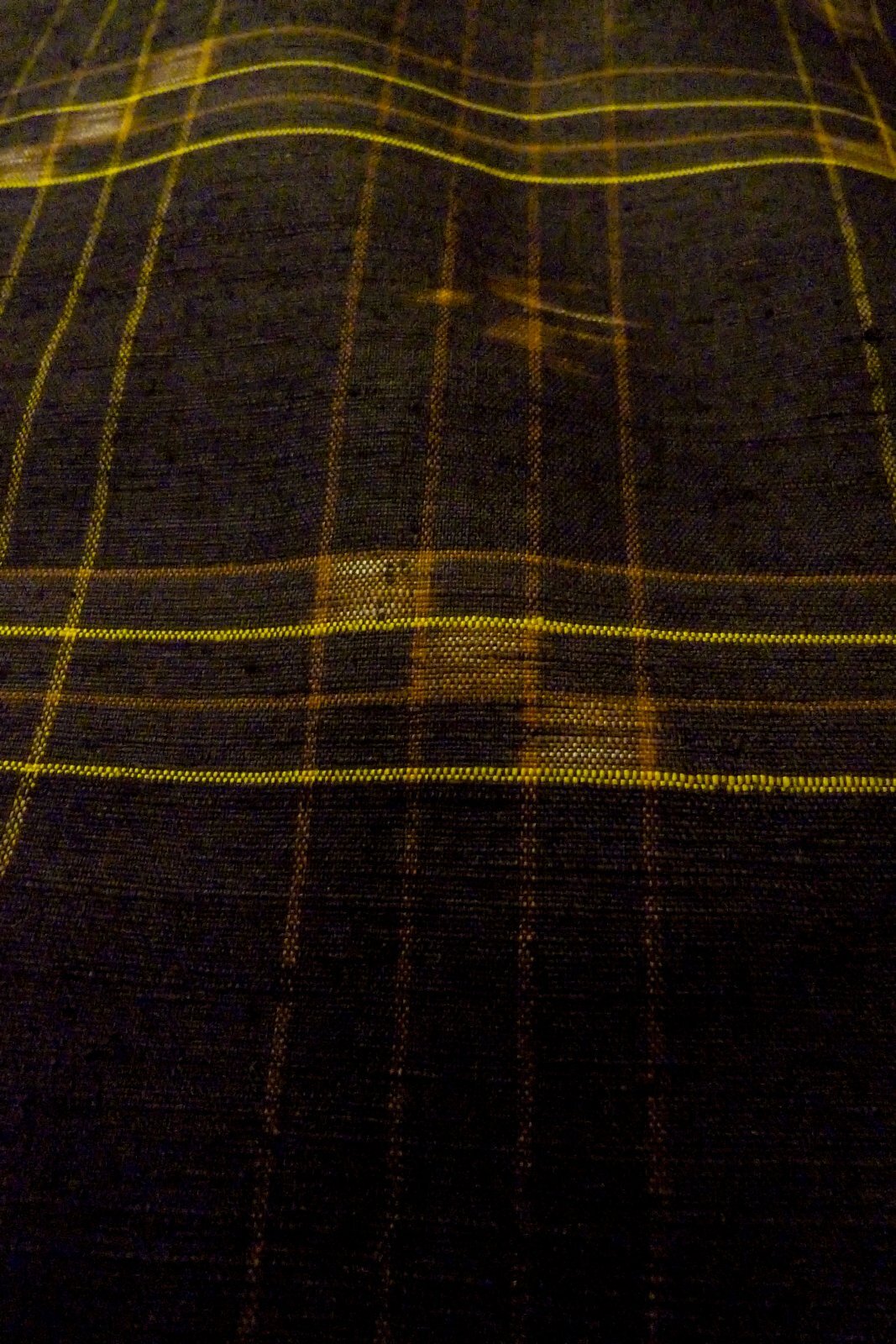 O1209G 女性用 紬 久米島紬 シルク(正絹) 深い茶色, チェック柄 【中古】【USED】【リサイクル】 ★★★★☆【O1209G】