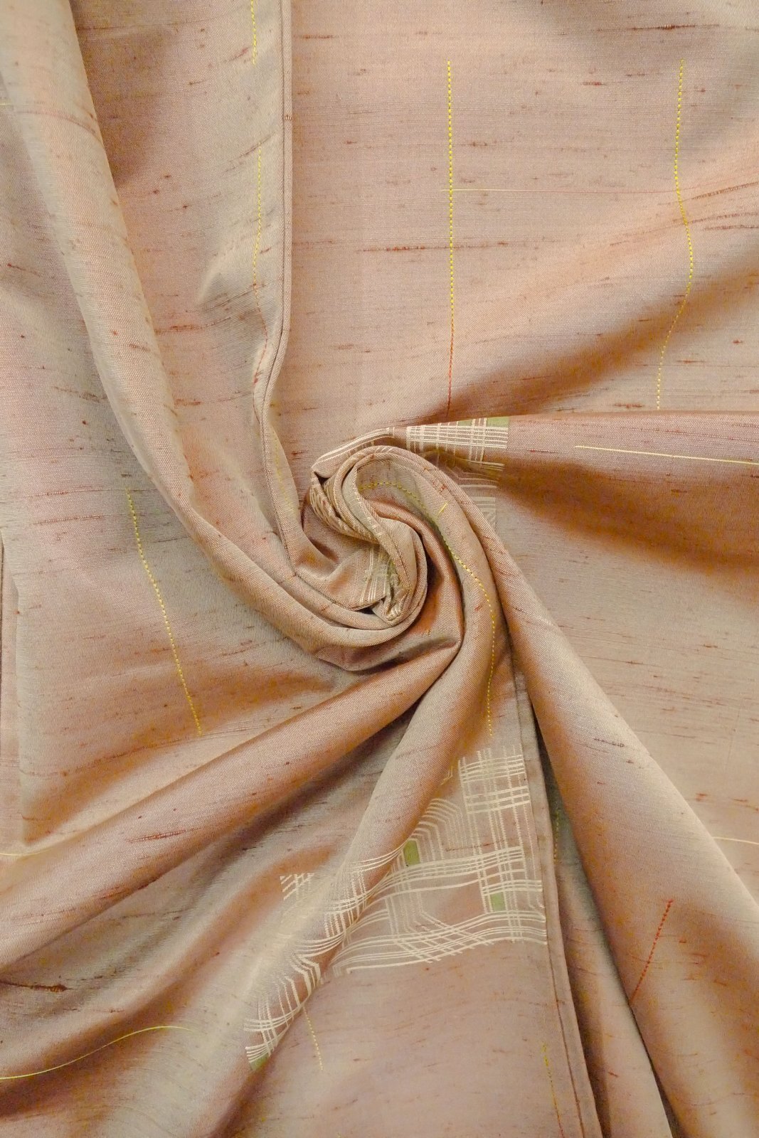 O1209M 女性用 紬 シルク(正絹) 淡い赤色, 線 【中古】【USED】【リサイクル】 ★★★☆☆【O1209M】 [O1209M]