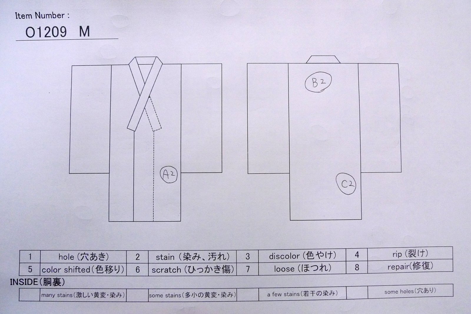 こちらの商品は中古の古着になります。シミ・傷等の写真はあくまでもご参考程度にお願いします。写真に写っていないダメージがありましても、「中古品」「難あり」「訳あり」ということをご了解の上、ノークレームでご購入下さいませ。