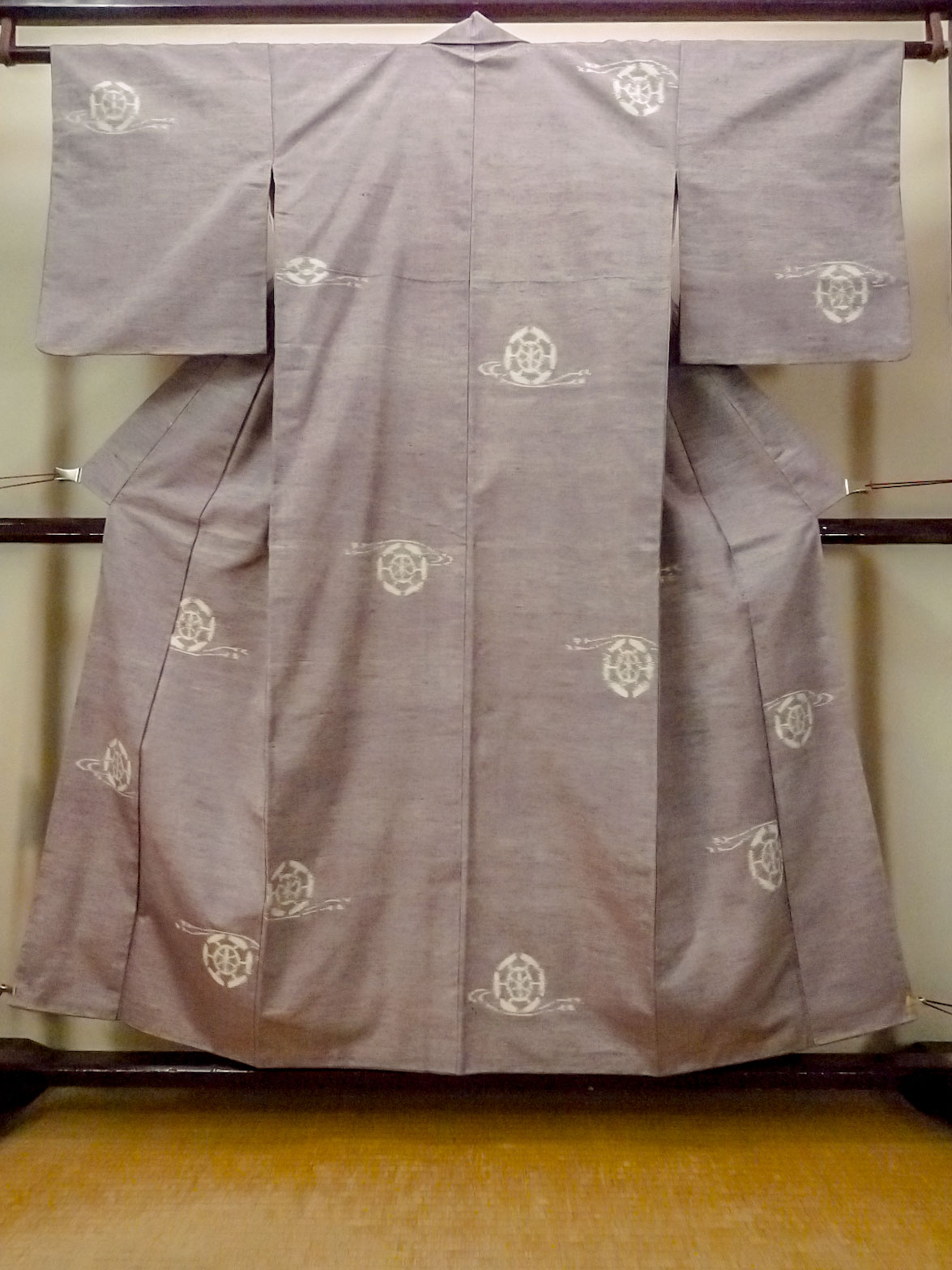 O1209U 女性用 紬 シルク(正絹) 薄い灰色がかった藤色, 車輪 【中古】【USED】【リサイクル】 ★★★★☆【O1209U】
