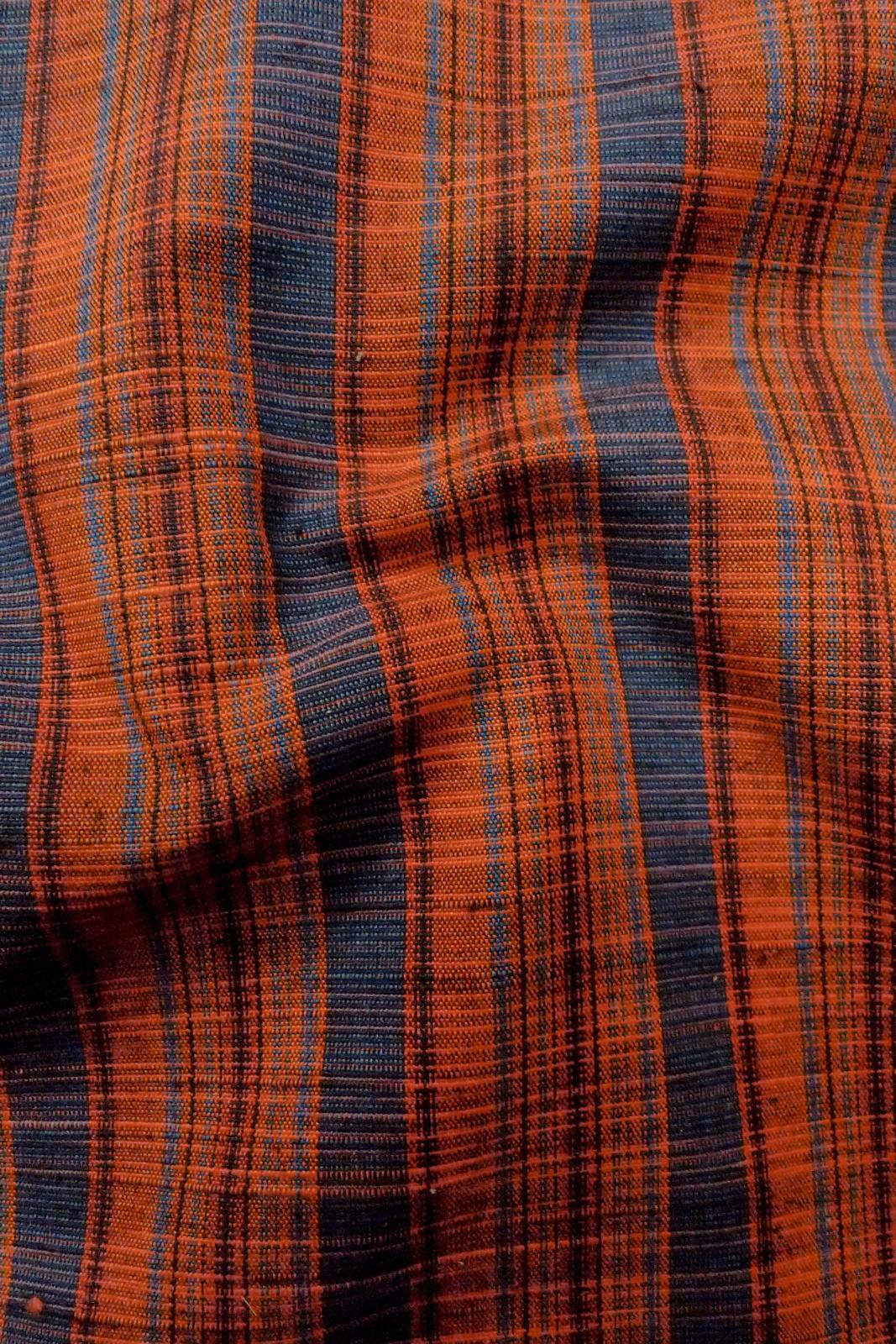 O1210B 女性用 紬 シルク(正絹) 朱赤, 縞 【中古】【USED】【リサイクル】 ★★★★☆【O1210B】
